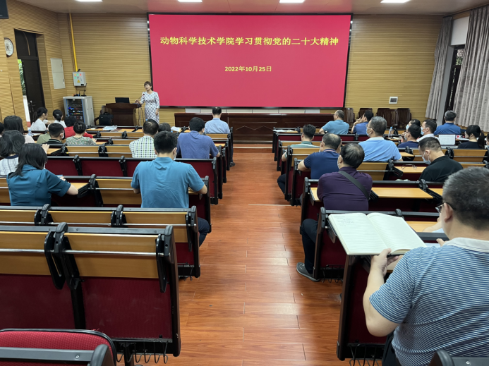 顾慕娴书记从“党的二十大精神、习近平参加广西代表团讨论时的重要讲话、如何深入贯彻党的二十大精神”三个部分,带领全院教职工学习领会党的二十大的重要精神。并强调,科技、教育、人才是全面建设社会主义现代化国家的基础性、战略性支撑,公司继续做好一流学科,建设办好人民满意的教育,深入实施科教兴国战略、人才强国战略和创新驱动发展战略。