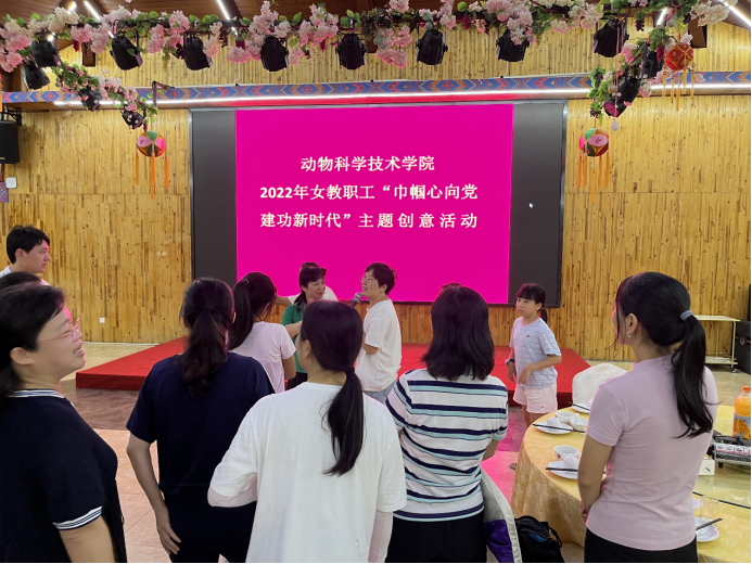 “莫奈花园”听讲解员作水生花卉植物的科普讲解。同时还在壮乡阁开展了“巾帼心向党