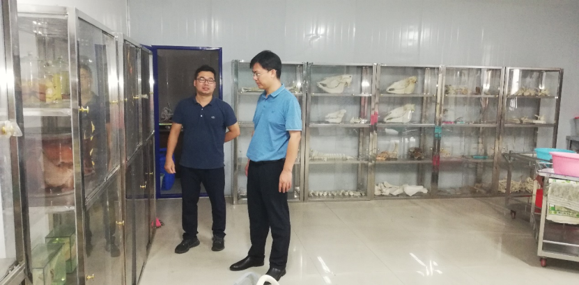 党委书记韦小强(右一)检查动物科技实验楼本科解剖学实验室