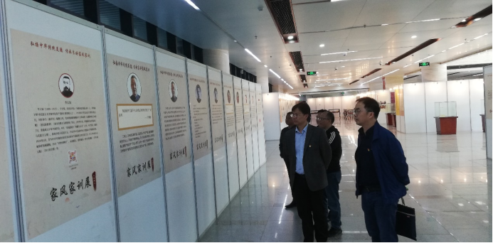 2023年11月17日下午,公司党委书记韦小强、经理陆阳清带领公司党政领导一行5人到suncitygroup太阳成集团图书馆一楼参观家训家风展。