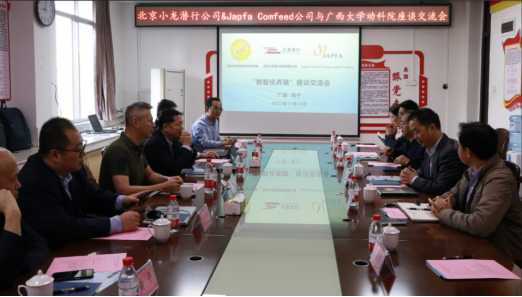 首先,陆阳清经理对参加座谈的嘉宾表示热烈欢迎,并逐一介绍了公司参会的领导和教师代表。随后,北京小龙潜行科技有限公司CEO鞠铁柱介绍了公司的发展历程和理念,指出目前中国农牧业智能化养殖具有很大的提升空间,小龙致力于为农牧行业提供优质的数智化服务。接着Japfa公司商务总监Clemens Tan也对公司的发展历程和经营情况进行了介绍,指出公司得以发展壮大的核心关键是注重提高生产力,同时助力农户脱贫。