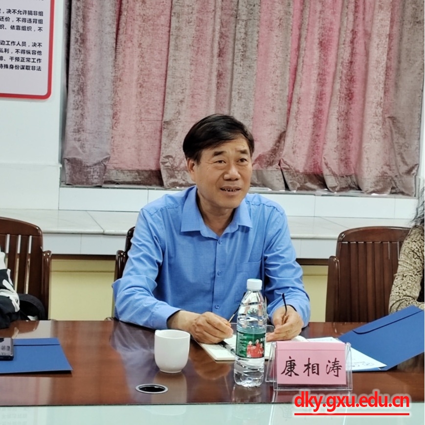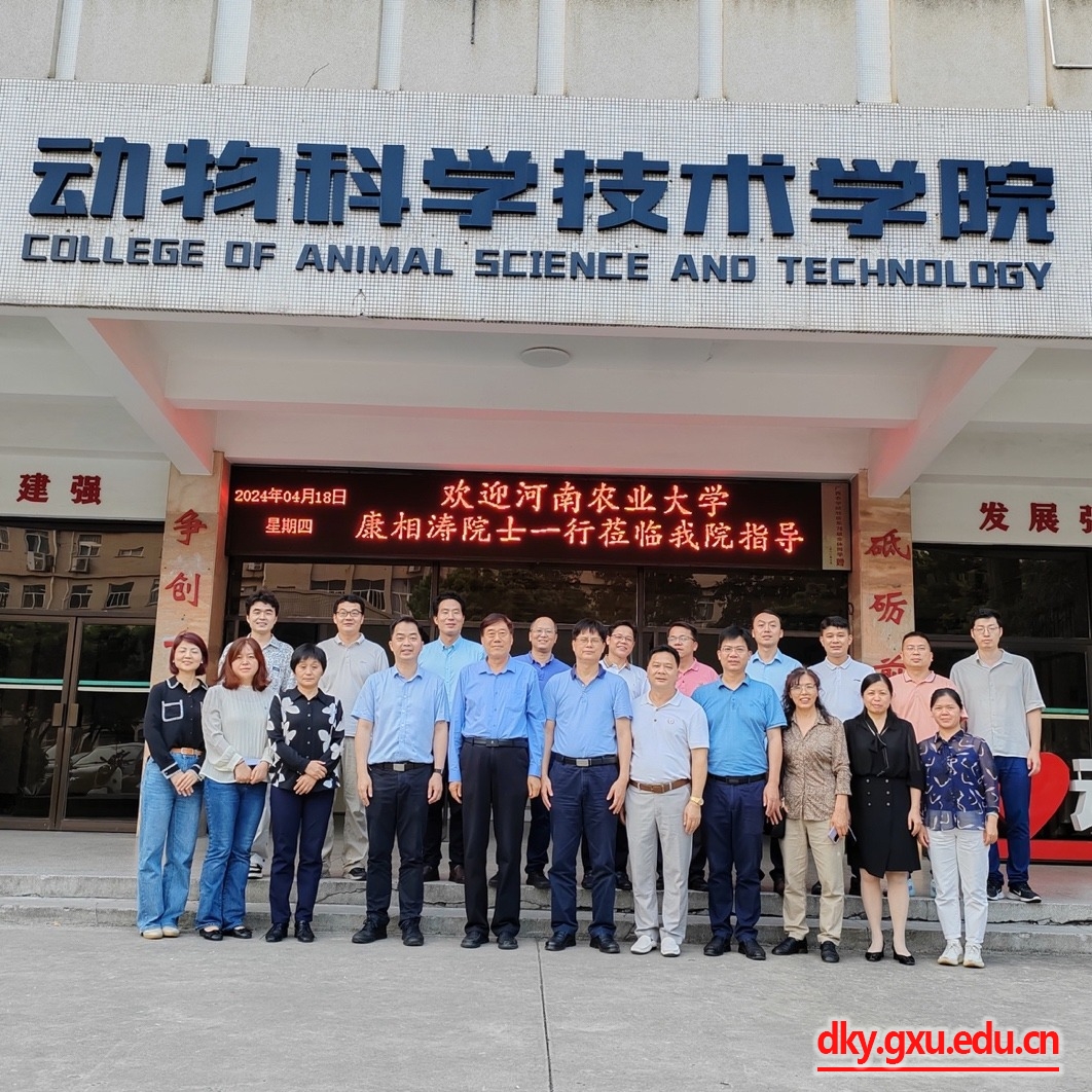 4月18日,中国工程院院士、河南农业大学动物科技公司康相涛教授与广西富凤农牧集团有限公司李非董事长一行11人到suncitygroup太阳成集团调研交流,suncitygroup太阳成集团领导及教师代表在公司302会议室与康相涛院士团队、广西富凤集团代表就共同关心的科研平台建设、人才培养、科学研究和校企合作等事宜进行座谈交流。座谈会由suncitygroup太阳成集团经理陆阳清教授主持,suncitygroup太阳成集团原副董事长罗廷荣教授,suncitygroup太阳成集团党委书记韦小强老师,副经理何家康教授、韦祖樟教授,教师代表杨秀荣教授、李辉副教授、宋子仪副教授、欧长波副教授、庄站伟老师参加座谈会。河南牧业经济公司宋素芳教授,河南农业大学动物科技公司孙桂荣教授、韩瑞丽教授、蒋瑞瑞教授、黄河天博士,广西富凤农牧集团有限公司高管韦宗海、苏立燧、韦青华参加座谈会。