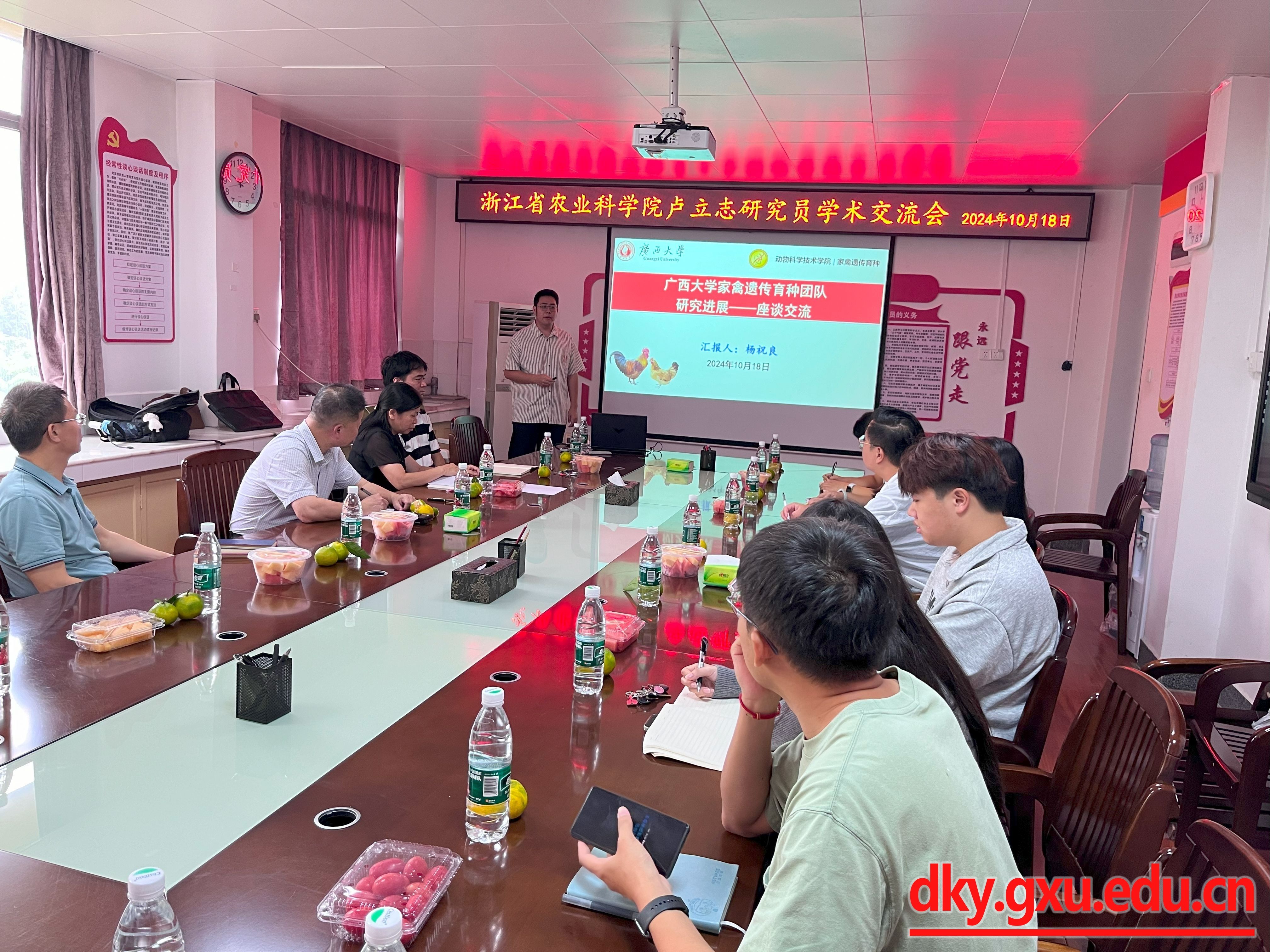 在听取完相关汇报后,卢立志研究员对suncitygroup太阳成集团家禽遗传育种团队取得的显著成绩给予了高度评价,强调这些成就离不开团队每位成员的辛勤付出与团结协作。随后,他从多个维度深入介绍了浙江省农科院畜牧兽医研究所家禽育种与养殖团队的情况。最后,他指出广西作为全国知名的水禽养殖大省,具有巨大的发展潜力和广阔的研究空间,suncitygroup太阳成集团作为区内顶尖高等学府,肩负着推动水禽产业技术革新与产业升级的重要使命。