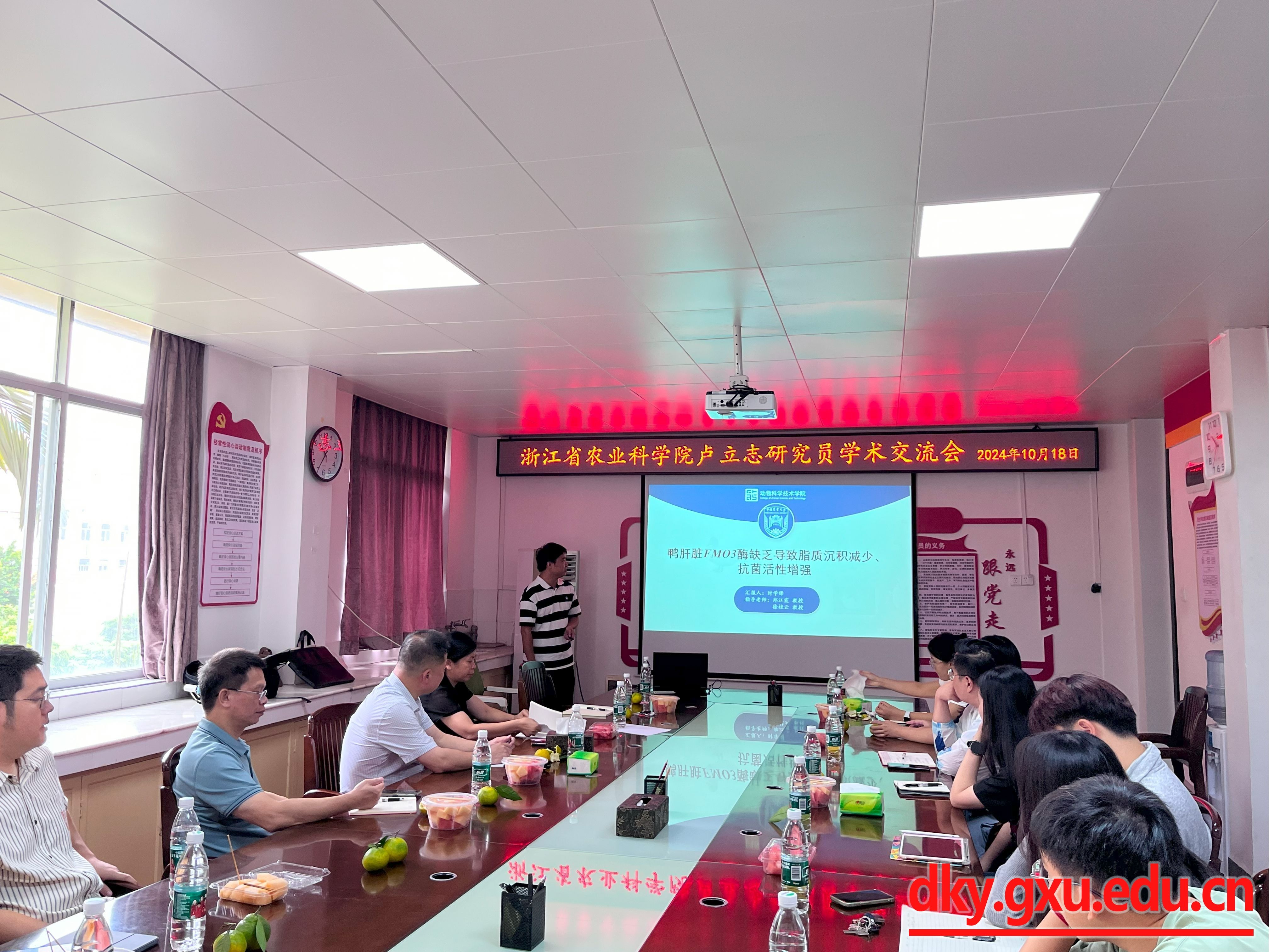 10月18日,国家水禽产业技术体系遗传改良研究室主任与蛋鸭品种改良岗位专家、浙江省农业科公司卢立志研究员应邀来suncitygroup太阳成集团进行学术交流活动。学术交流会由suncitygroup太阳成集团杨秀荣教授主持,动物医学系韦天超副教授和家禽遗传育种师生到场学习聆听报告。