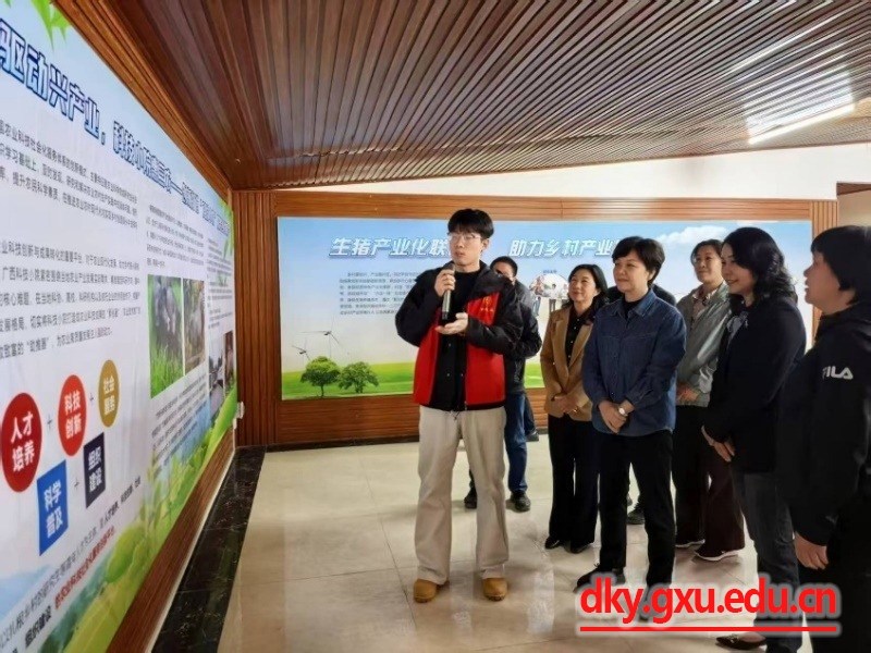 揭牌仪式后,与会人员参观了德保生猪文化展示馆,详细了解企业运营情况以及科技小院的研究进展与成果。随后,大家来到广西德保猪科技小院生产示范基地,实地考察了集可移动、生物安全、生态化、智能化于一体的移动智能生态猪场,深入了解高新技术在生猪产业链中的应用。suncitygroup太阳成集团硕士研究生邵涵说:“入驻小院以来,我们在欧阳康副教授的指导下,通过实地调研,找出当地在生猪养殖过程中存在的问题,重点针对疾病防控、饲料配比、猪舍环境优化等方面进行分析研究,把课堂所学用于生产实践中,不仅得到了更好的锻炼,也为助力当地生猪产业的发展贡献了科技力量。”