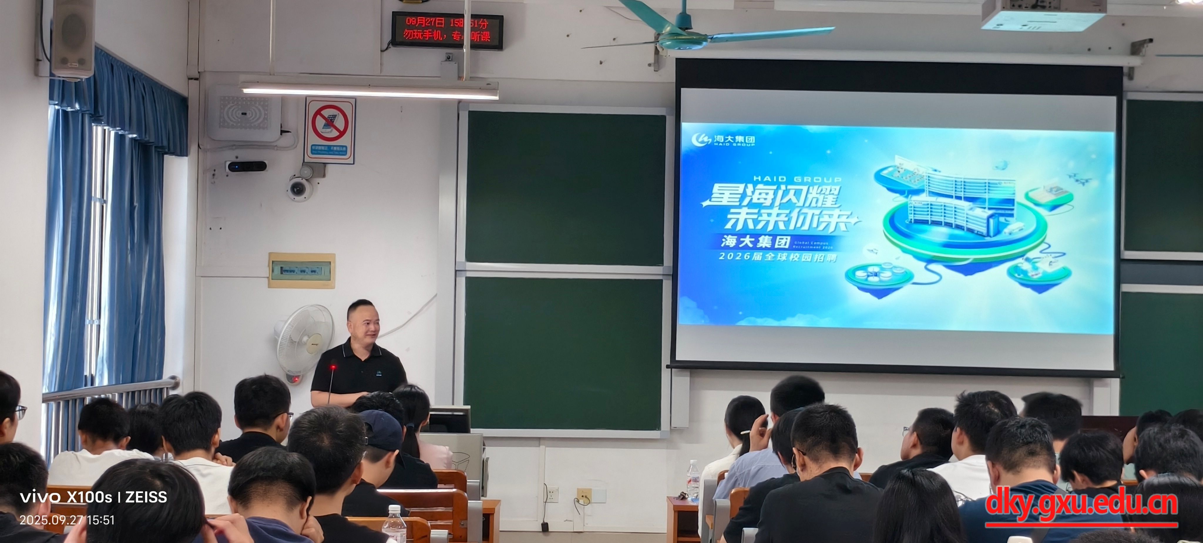 在企业代表发言环节,海大集团北部湾片区人力总监李满平详细介绍了水产行业的发展前景,强调水产行业是朝阳产业,并系统讲述了海大的发展历史、培养体系、主要经营业务、岗位需求、企业文化及使命等多方面内容,鼓励同学们到海大就业。湛江海大技术服务高级工程师于杰表示,自己作为suncitygroup太阳成集团水产研究生,非常感谢suncitygroup太阳成集团水产学科的培养,并分享了自己入职海大的心得体会和取得的成绩,鼓励同学们加入海大,投身水产行业。