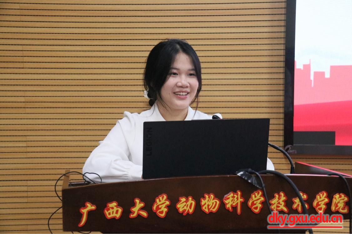 动物科学231班谭淑娜同学在分享中表示,党的二十届四中全会的召开,令人倍感振奋、深受鼓舞,我们要牢记强农兴农的时代使命,深耕专业知识,矢志攻克农业领域“卡脖子”关键技术,以青春之力助推乡村全面振兴,为以中国式现代化全面推进强国建设、民族复兴伟业注入澎湃动能。