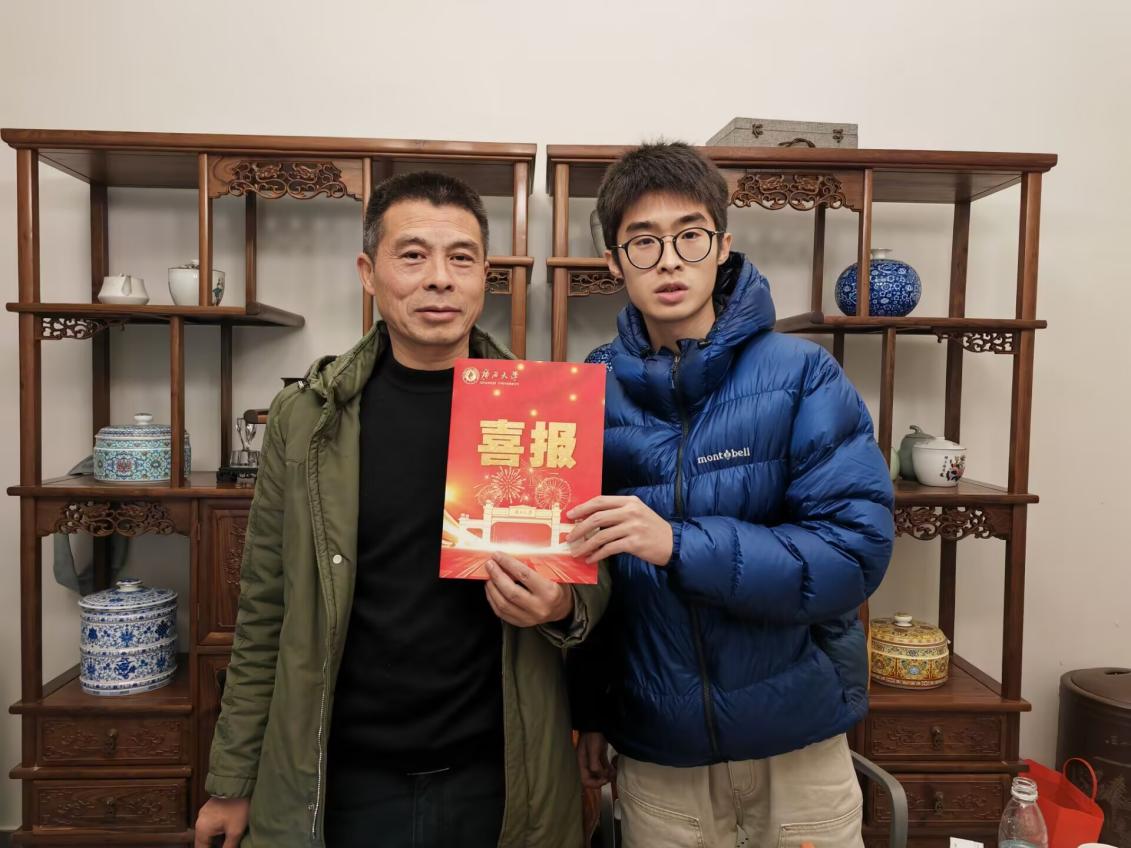 本科生自治区人民政府奖学金获奖员工刘震赫与家长