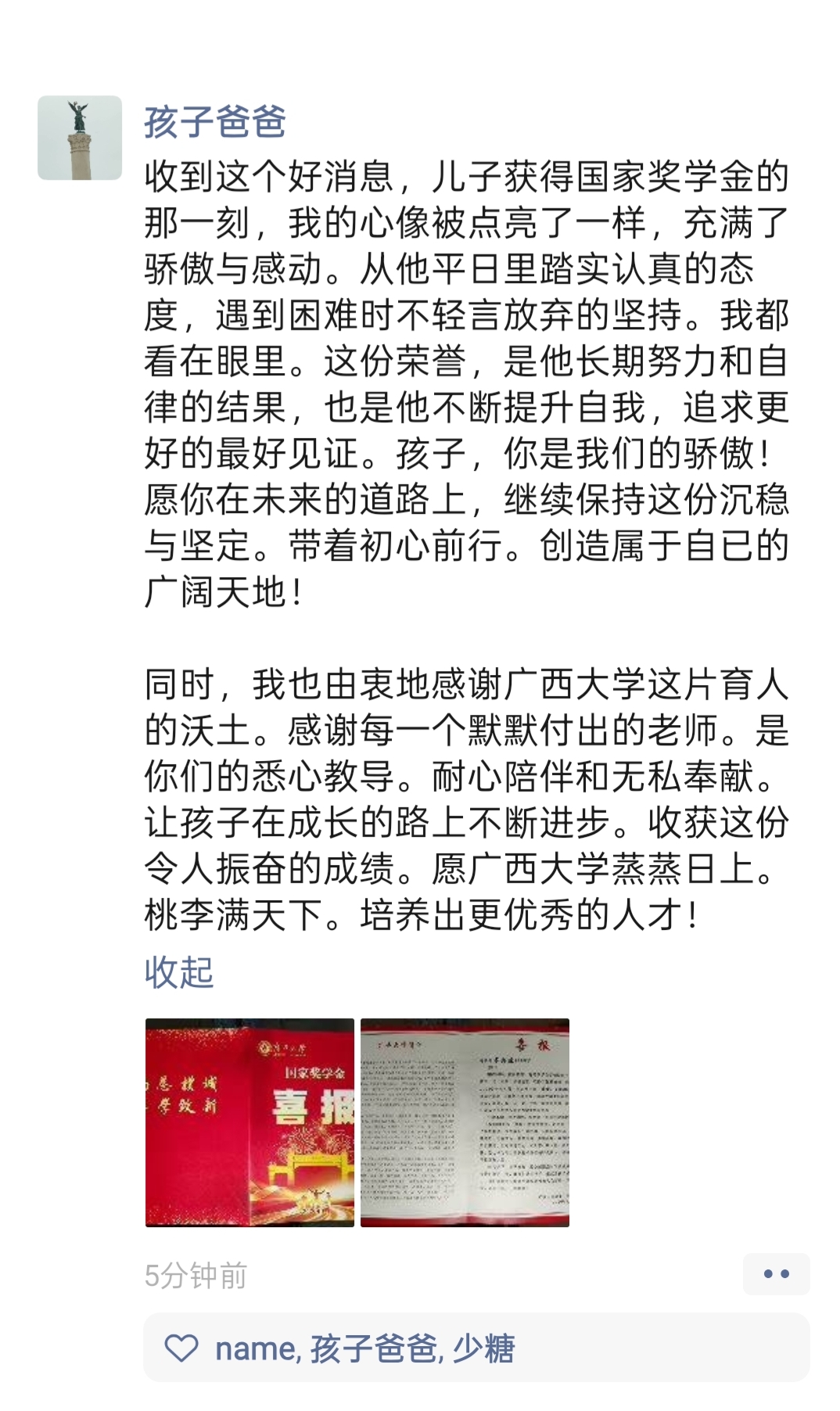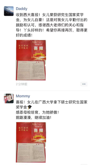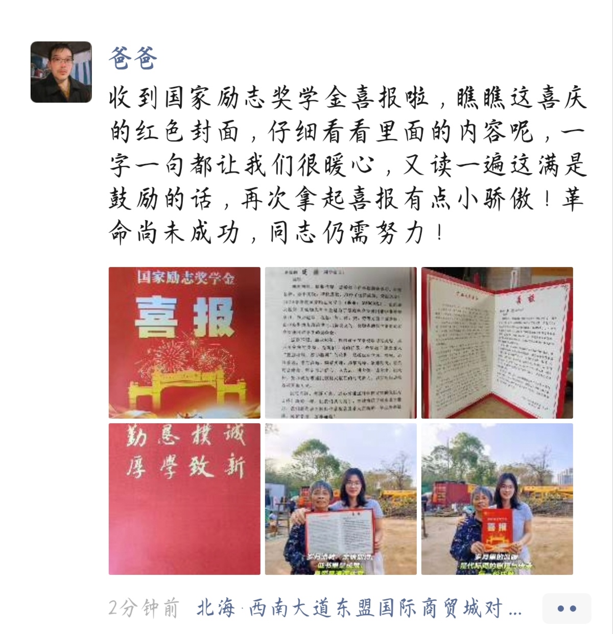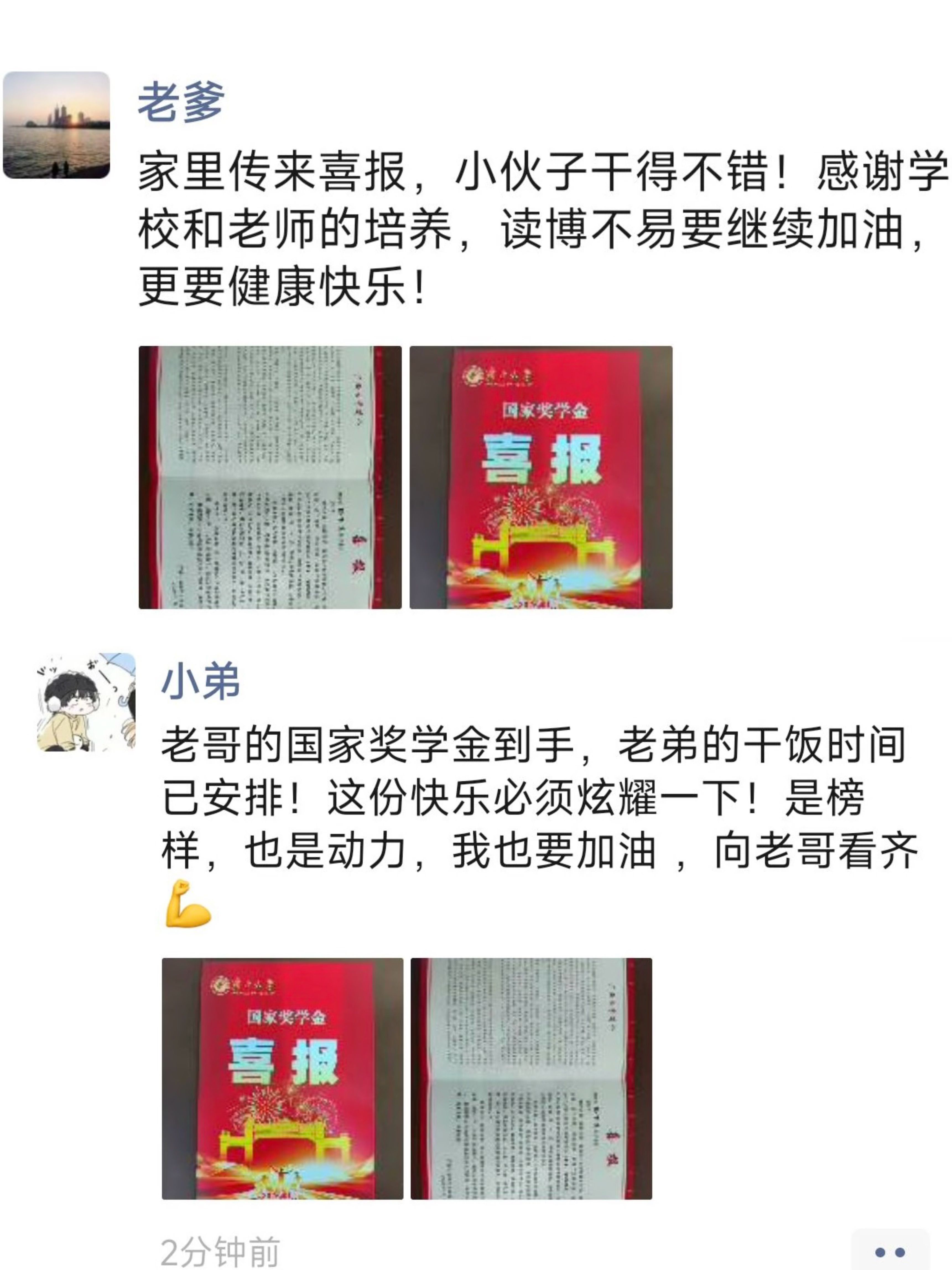 本科生国家励志奖学金获奖员工裴飞扬家长