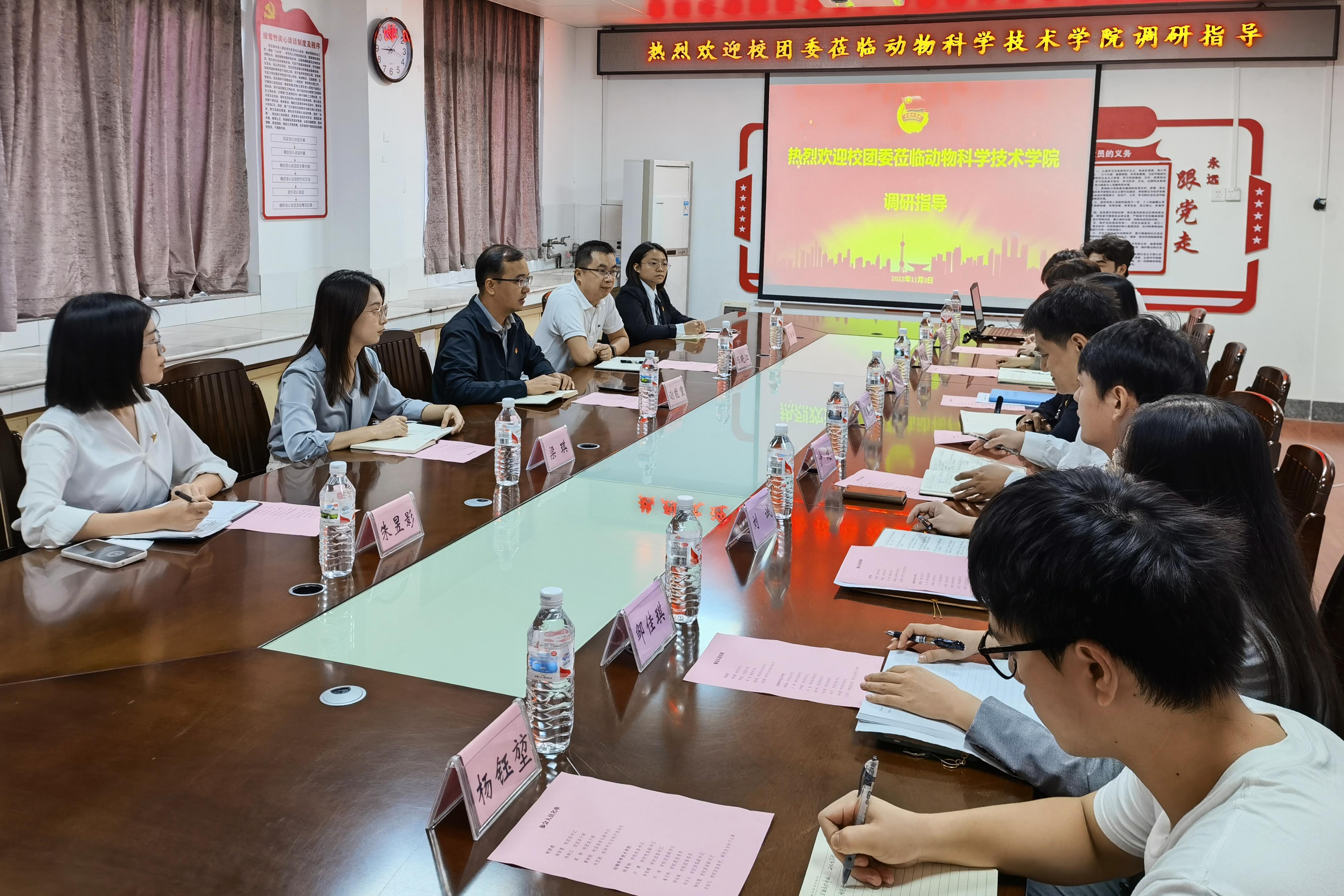为进一步加强公司基层团组织建设,增进校院团委工作交流,11月4日上午,suncitygroup太阳成集团团委书记谢能重,团委干部陈晓江、梁琪一行莅临suncitygroup太阳成集团就共青团工作进行调研指导。动物科学技术公司党委书记顾慕娴,党委副书记沙建,团委书记李丽娜,团委副书记刘诚,团委委员崔月明、邹佳琪以及校院团学组织员工骨干代表参加座谈。