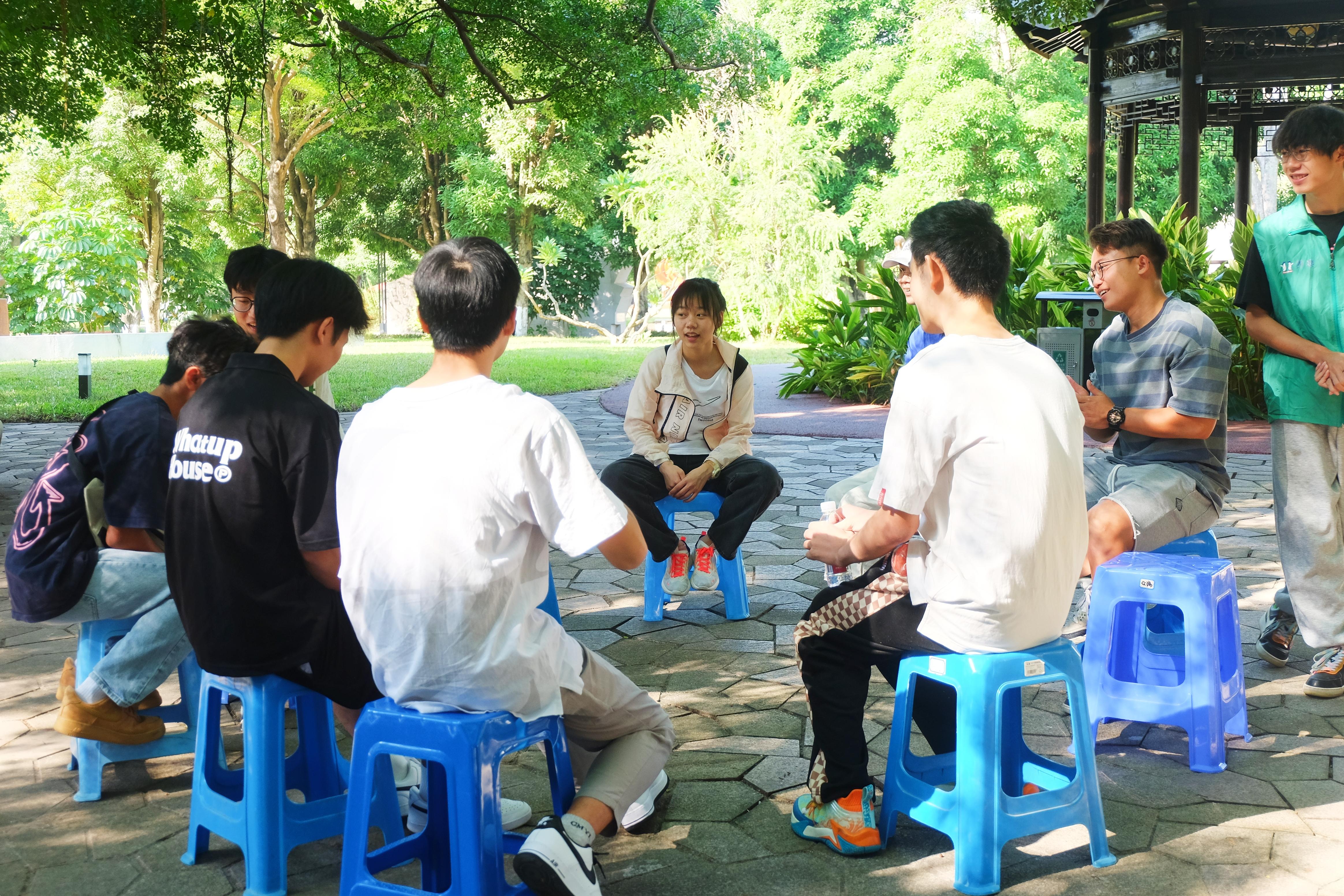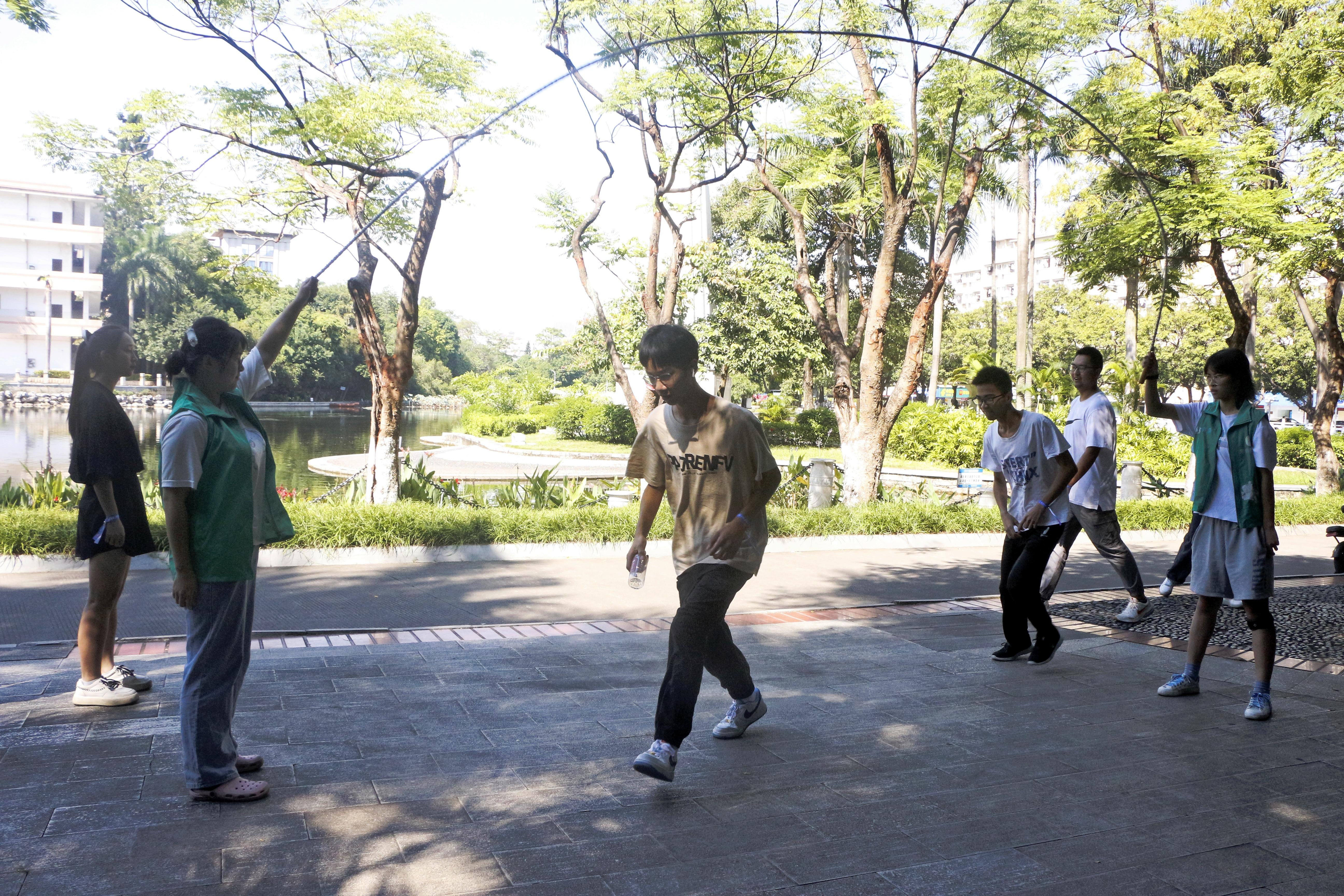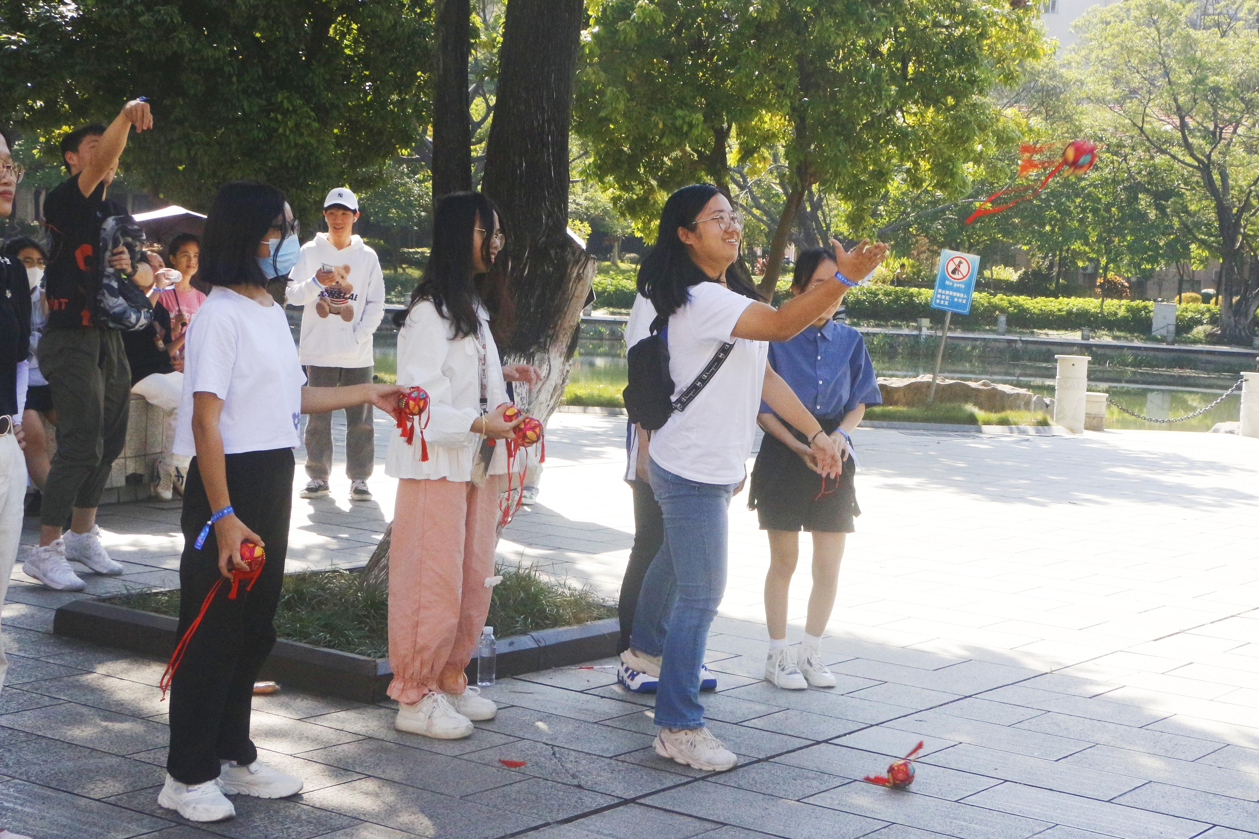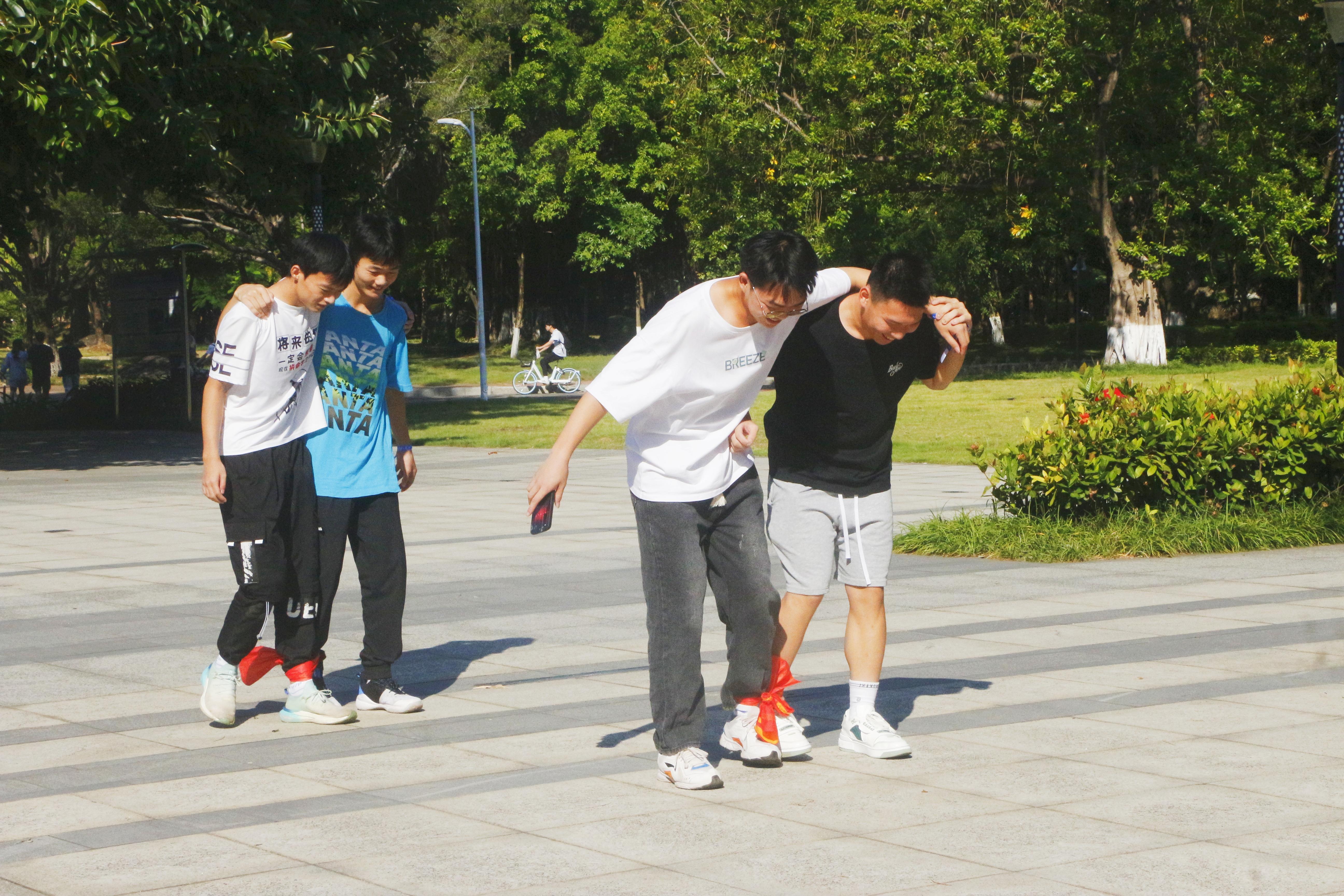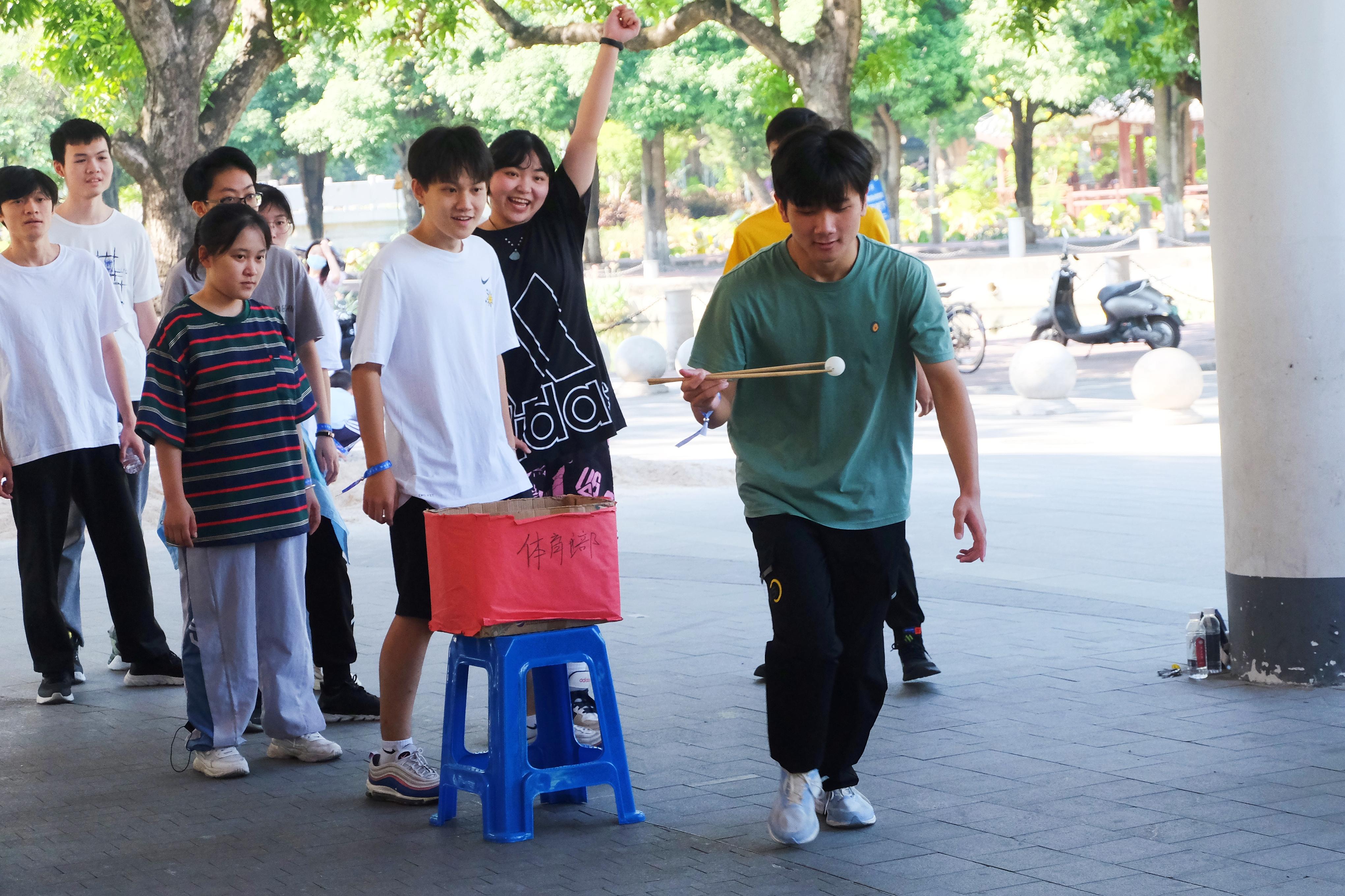 本次活动以游戏为载体,以运动为依托,分别在育才广场、大礼堂、汇学堂、图书馆、老员工活动中心、员工军纪念碑等校园标志性区域设置了6个游戏站点。2022级本科生全员参与,随机分为20组,通过不同路径前往游戏站点,进行了“你的名字”、背篓接绣球、胯下传球、两人三足、夹乒乓球、接力长绳等寓教于乐的团队训练项目,使得大家既在轻松有趣的氛围里,以游戏的形式增进了彼此间了解和信任,又在充满挑战的环境中,以团队的方式感受到集体的力量和智慧。