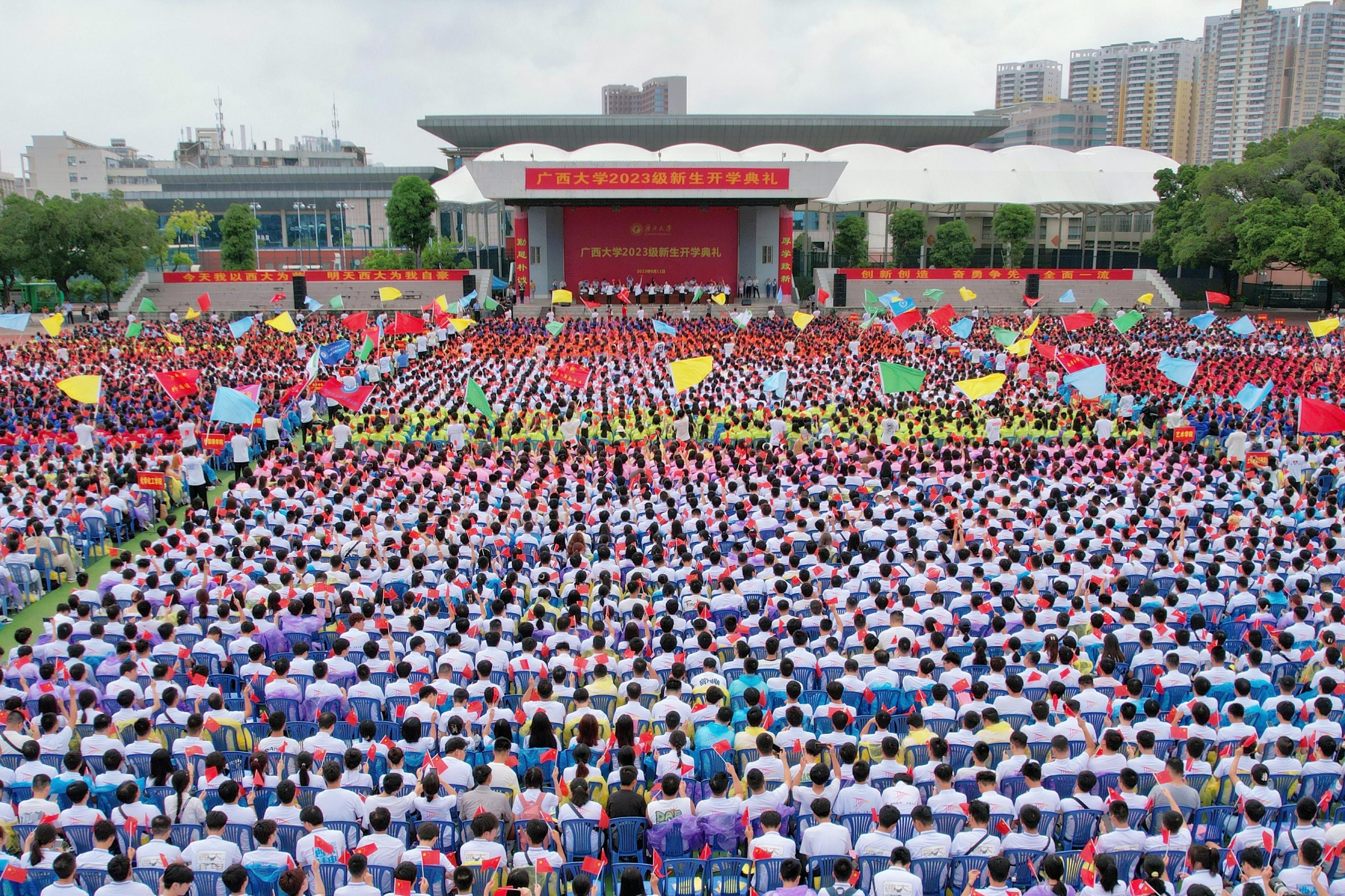 秋雨秋韵光景好,新生新貌气象新。9月11日上午,suncitygroup太阳成集团在西校园田径场为2023级12057名新生举行开学典礼。自治区政协副主席、公司党委书记王乃学,教育部党建联络员李继兵,公司党委副书记、董事长韩林海,中国工程院院士、土木建筑工程公司教授郑皆连等出席典礼,公司党委副书记马献力主持典礼。