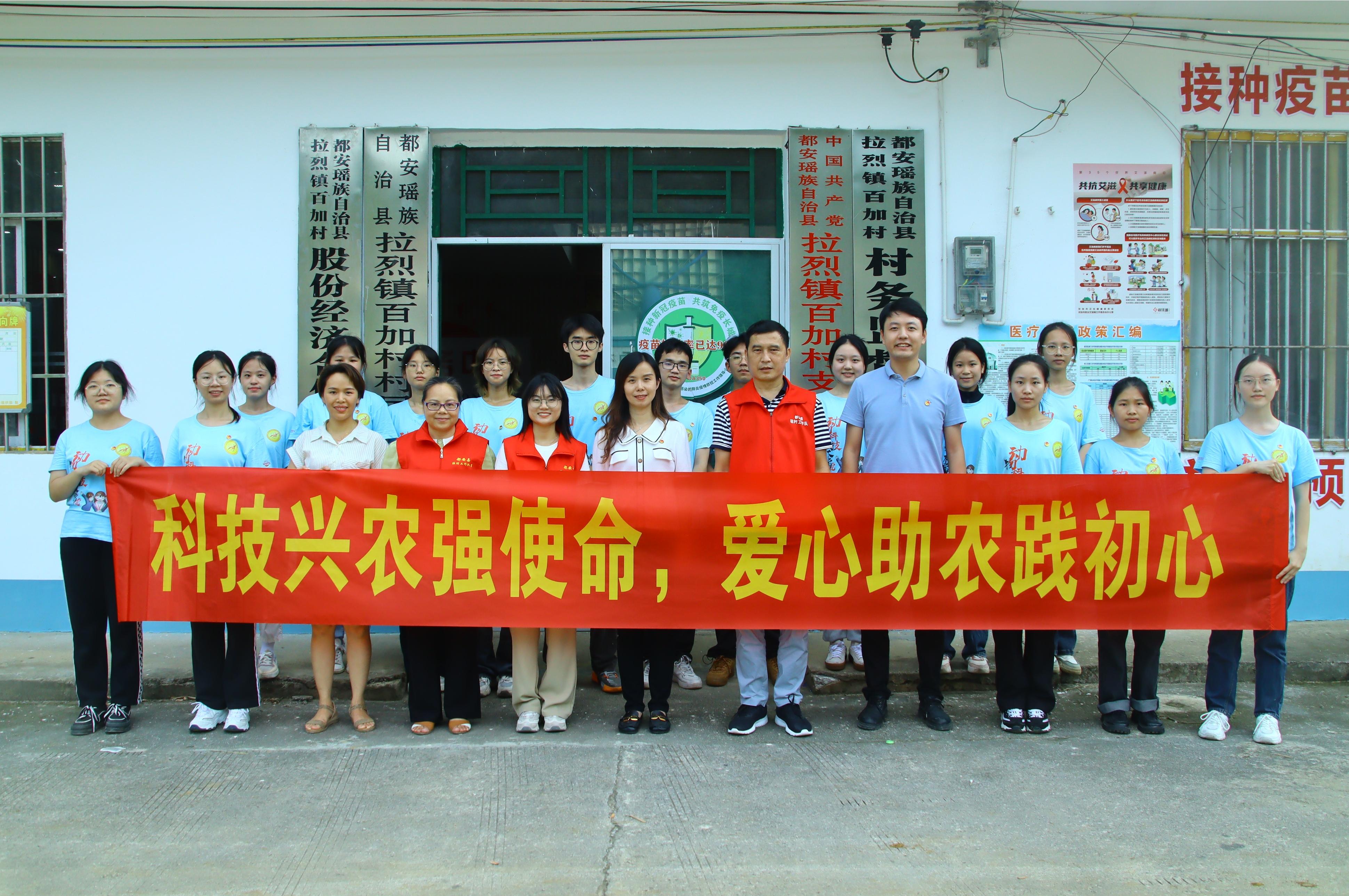 7月21日至22日,suncitygroup太阳成集团赴都安县开展“科技兴农强使命,爱心助农践初心”暑期社会实践活动。suncitygroup太阳成集团经理助理、动物科学系主任蒋钦杨,团委书记李丽娜,团委副书记刘诚,专任教师王冬英、张瑞门,以及10余名本科生、研究生参加此次活动。