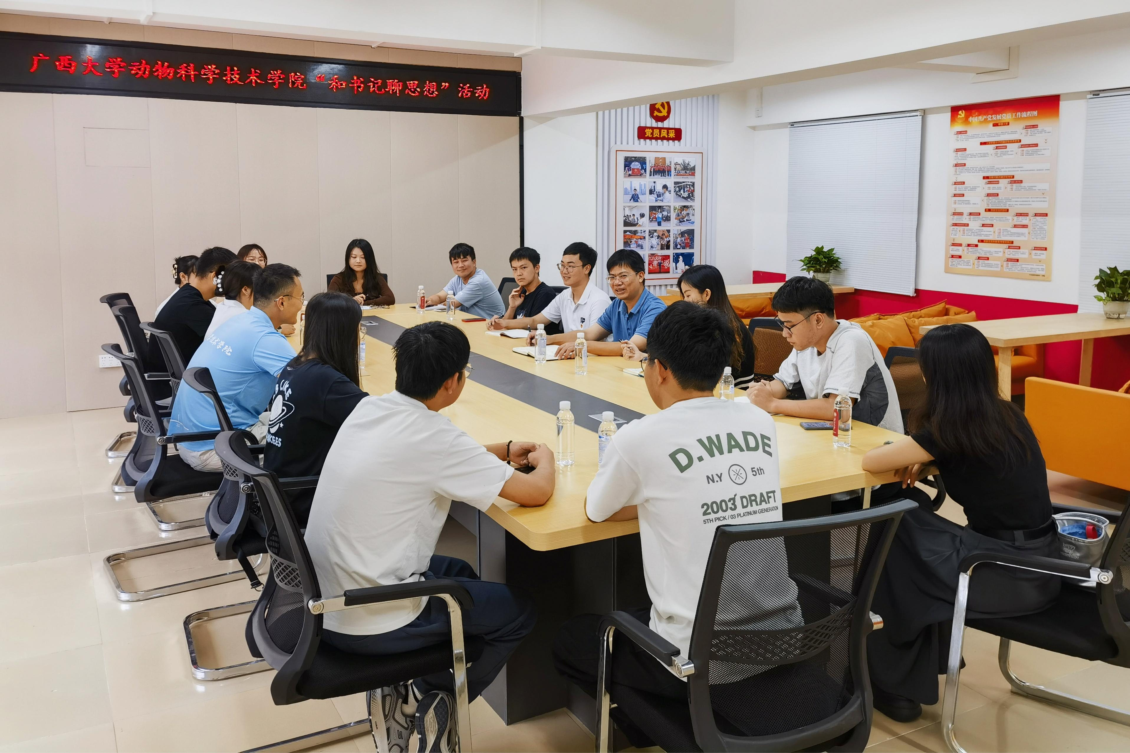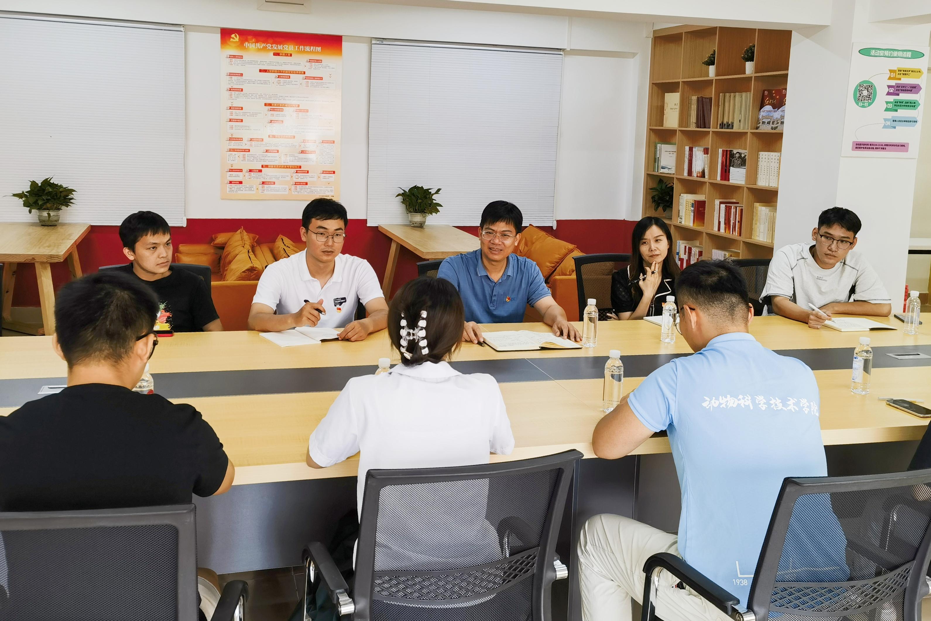 9月28日上午,suncitygroup太阳成集团动物科学技术公司党委书记韦小强走进员工社区,在西21栋党员活动室开展“和书记聊思想”活动,面对面了解员工思想动态、学习工作、日常生活等方面情况。suncitygroup太阳成集团团委书记李丽娜,团委副书记刘诚,辅导员马朝阳,以及2023级研究生代表参加座谈。