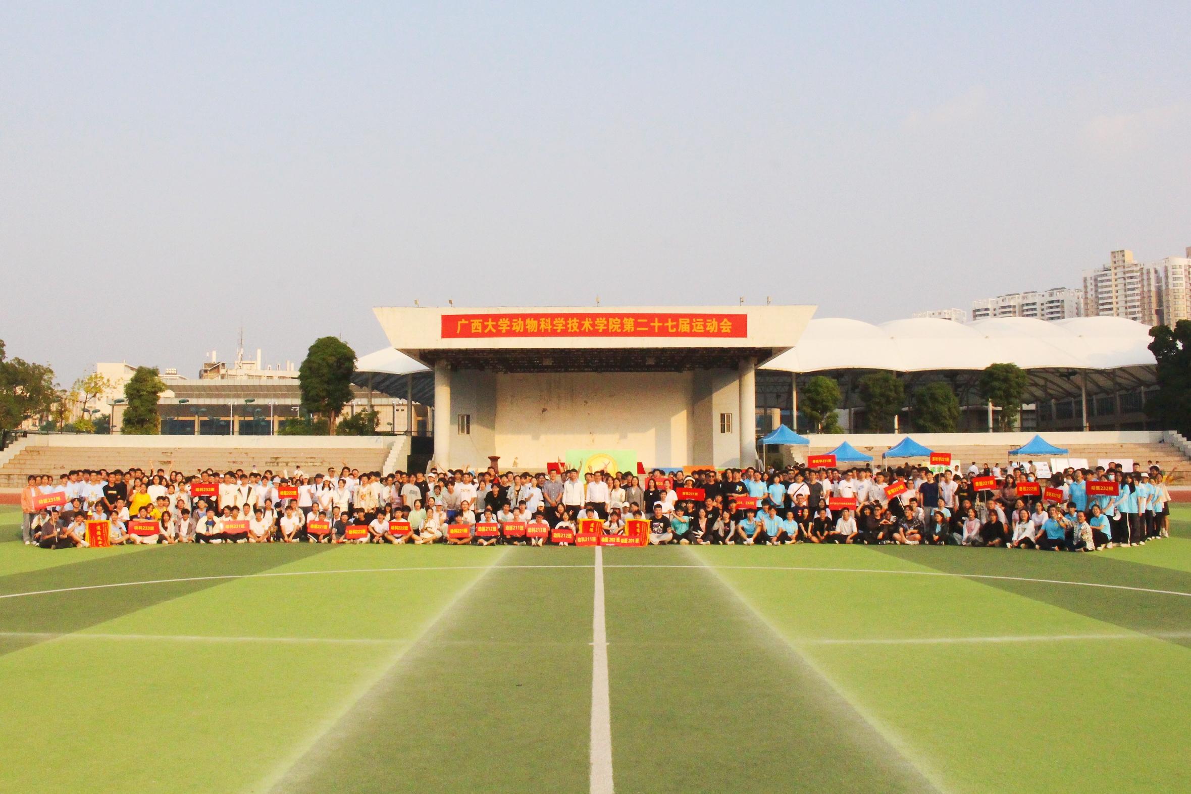 11月25日,suncitygroup太阳成集团第二十七届运动会在西校园田径场隆重举行。动物科学技术公司党委书记韦小强,经理陆阳清,党委副书记沙建,经理助理、动物科学系主任蒋钦杨,团委书记李丽娜,团委副书记刘诚,辅导员崔月明、彭可可、邹佳琪、马朝阳,以及全院本科生、研究生参加此次活动。