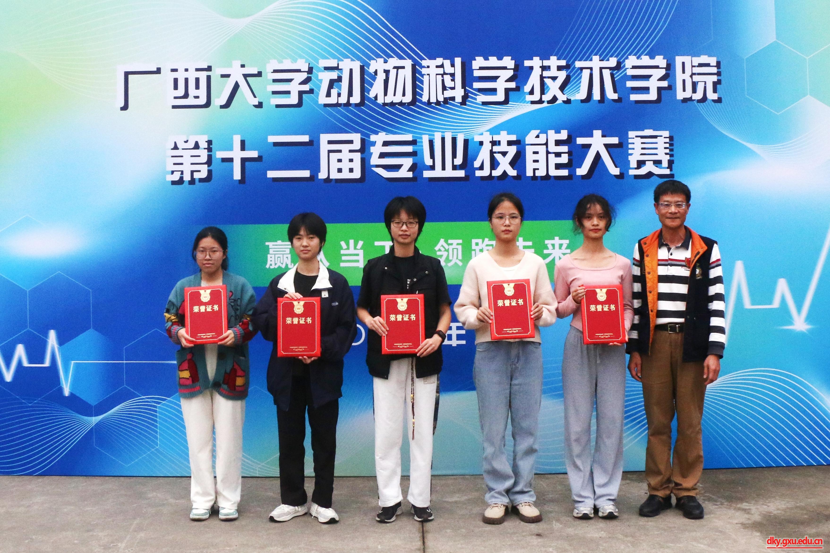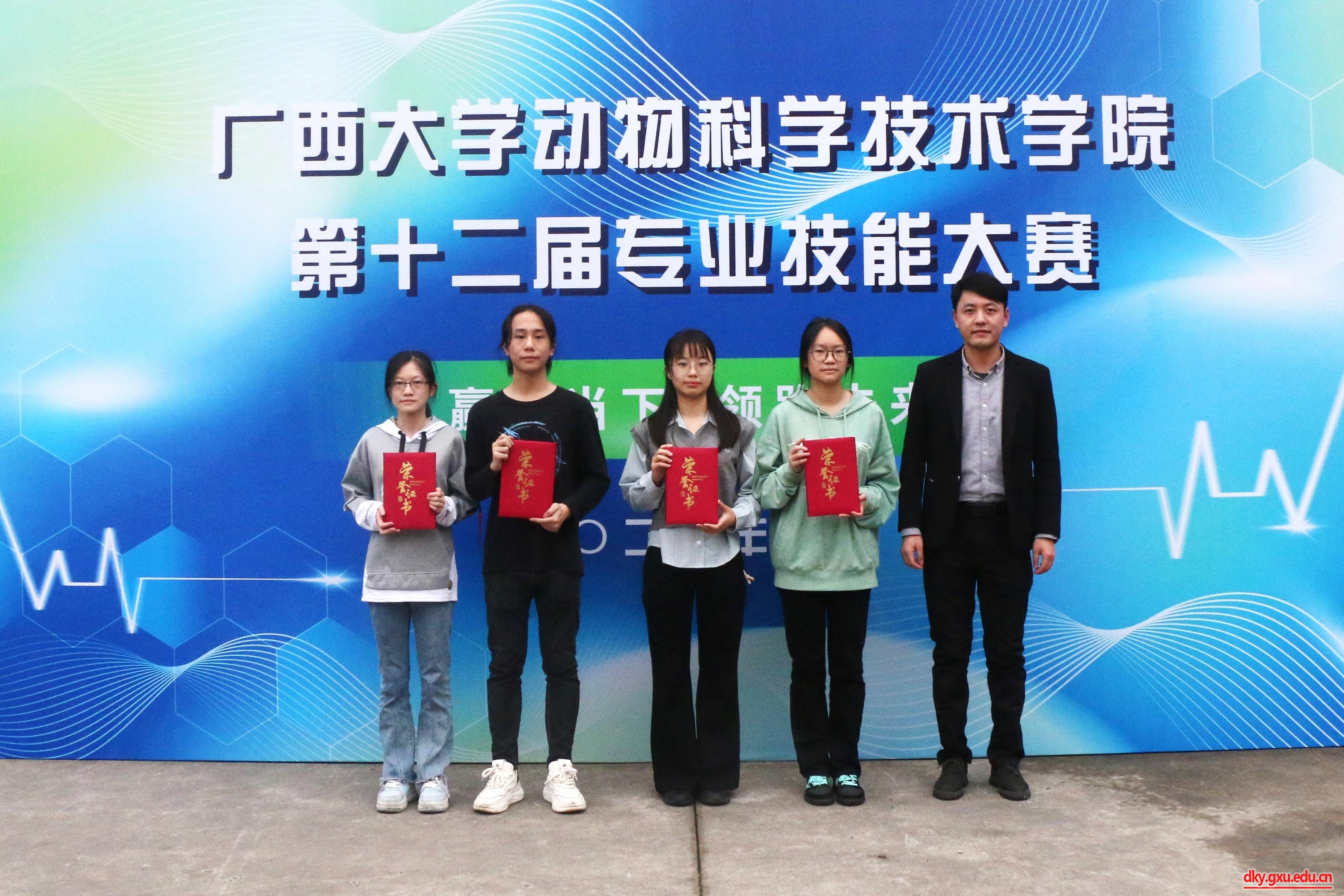 本次比赛共设置有兔的麻醉与插管、鸡的采血与解剖、猪的体型外貌评分与活体背膘厚测定、血涂片制备、外科手术缝合、生态畜牧场规划设计等室内项目,动物解剖绘图、家畜骨骼与肌肉标本的识别、饲料原料的快速鉴定与掺假识别、徒手打结与器械识别等室外项目。