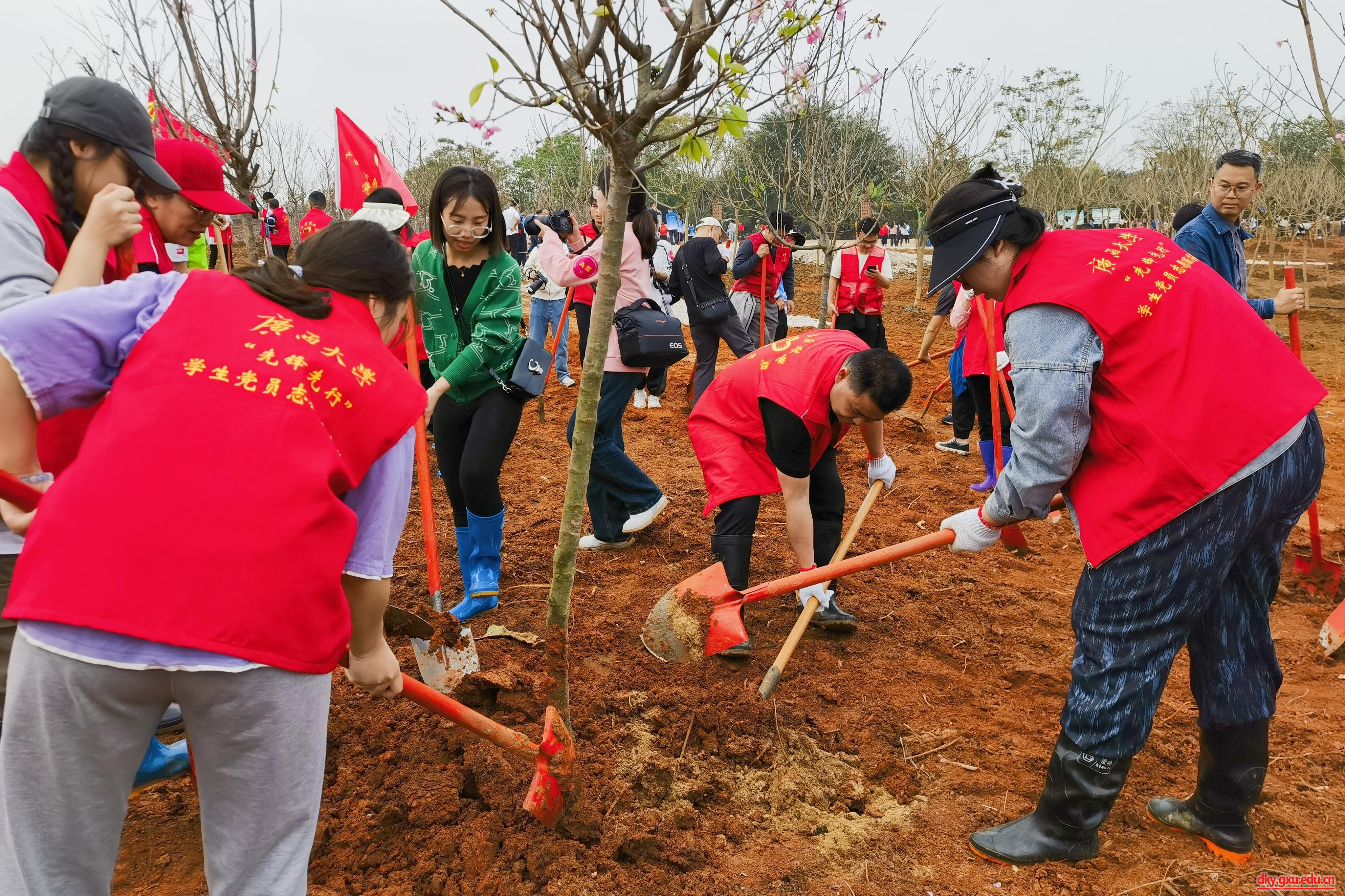 春回大地,草长莺飞,植树造林正当时。3月17日上午,由共青团广西区委、自治区党委区直机关工委、自治区林业局联合开展的2024年“美丽家园 青春行动”广西各族各界青年代表义务植树活动在广西七坡花卉产业园举行,suncitygroup太阳成集团组织20余名员工党员参与本次活动,以实际行动践行习近平生态文明思想,为建设新时代壮美广西贡献青春力量。