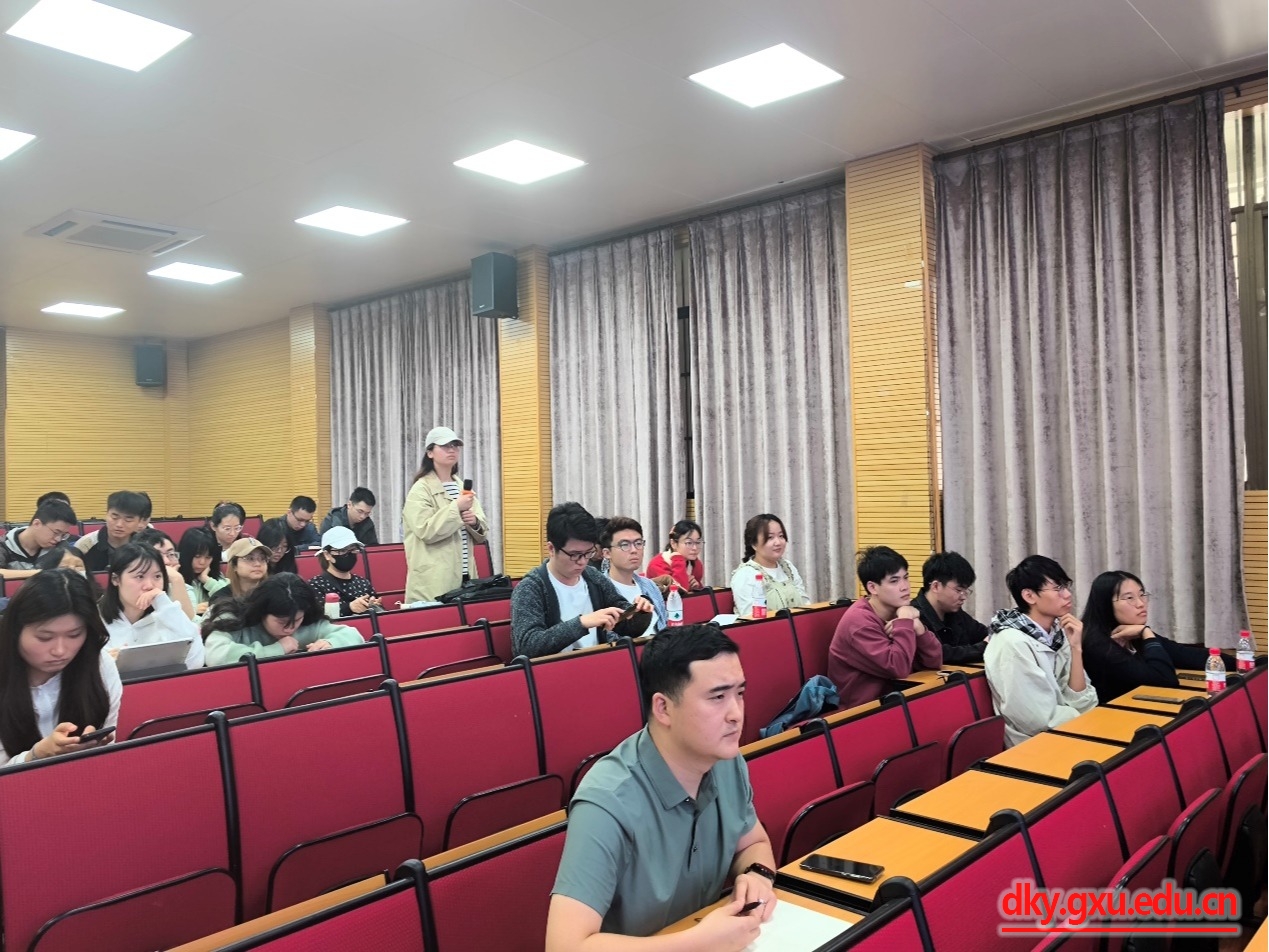 在交流环节中,同学们踊跃参与,积极发言。张颖副教授对同学们所提出的问题进行了耐心细致的解答,并鼓励同学们要扩展国际视野,锻炼多元化的研究思维,为提高自身的学术素养和创新能力奠定基础。