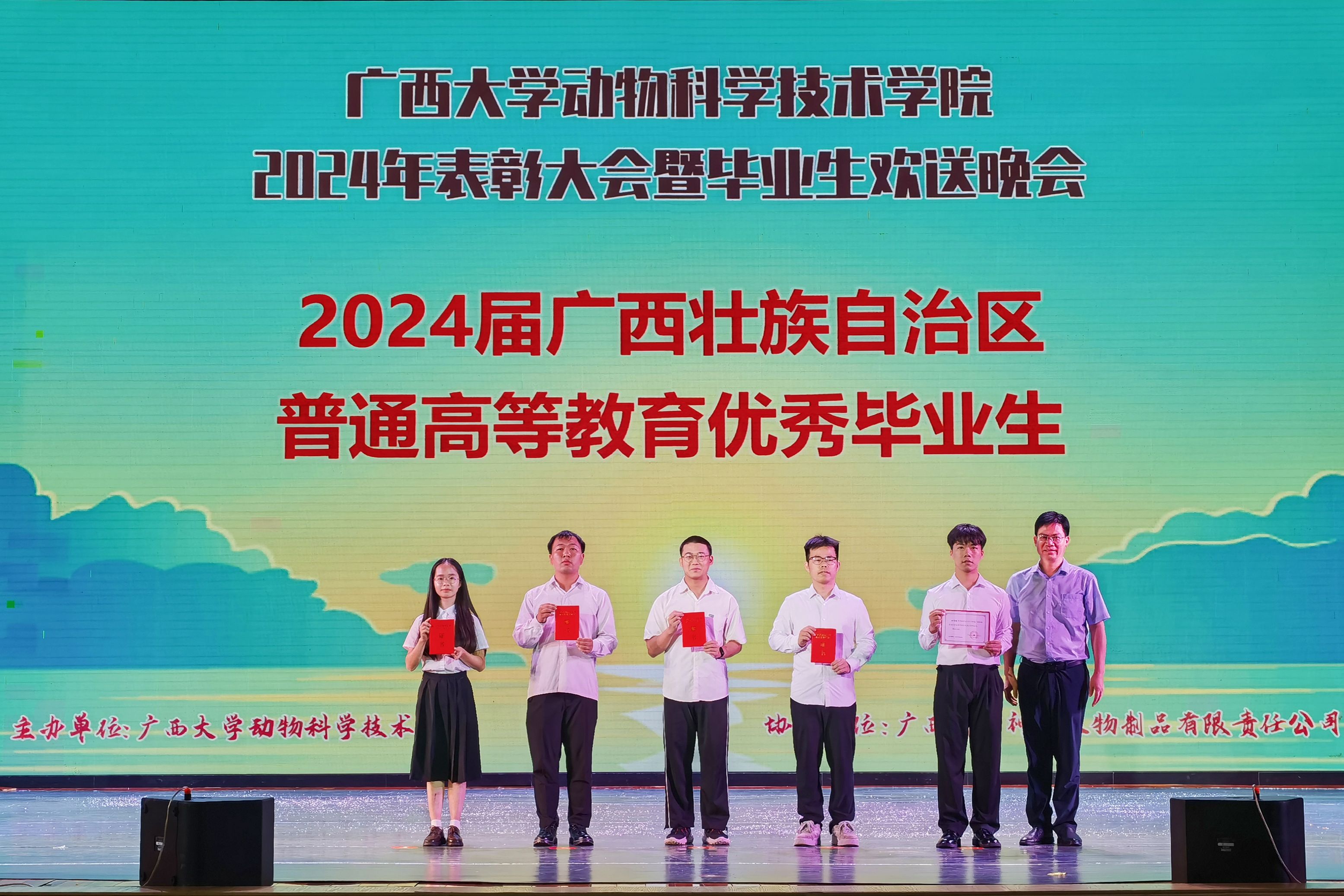 6月16日晚上,suncitygroup太阳成集团“出彩动科,点赞动科”2024年表彰大会暨毕业生欢送晚会在大礼堂举行。suncitygroup太阳成集团原副董事长、著名动物繁殖专家卢克焕,suncitygroup太阳成集团原副董事长、兽医学科带头人罗廷荣,校公司产品质量监控与评价中心主任梁微,校教务处副处长彭林欣,动物科学技术公司党委书记韦小强,经理陆阳清,党委副书记沙建,副经理何家康、韦祖樟、蒋钦杨,动物医学系主任陈樱,水产学科带头人潘英,团委书记李丽娜,团委副书记刘诚,辅导员崔月明、彭可可、邹佳琪、马朝阳,2005级员工、神九生物制品有限责任公司销售总监唐林生,以及suncitygroup太阳成集团1000余名师生欢聚一堂,共同参与此次活动。