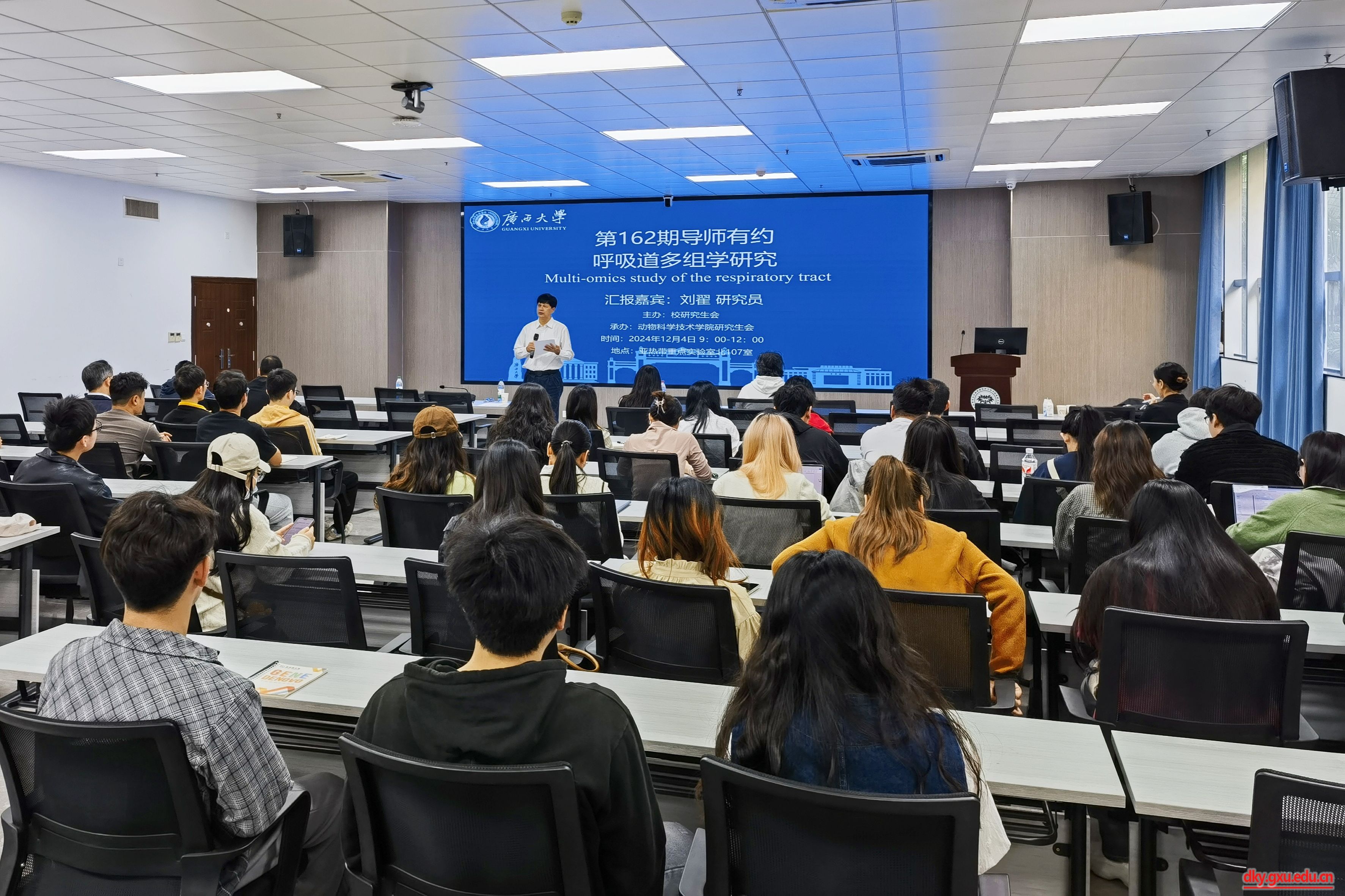 为搭建研究生与导师之间的互动平台,营造良好的学术文化交流氛围,12月4日上午,由suncitygroup太阳成集团研究生会主办,suncitygroup太阳成集团研究生会承办的第162期“导师有约”活动在国家重点实验室北107报告厅举行,主题为“呼吸道多组学研究”,中国科公司武汉病毒研究所研究员刘翟受邀主讲,100余名研究生代表现场聆听报告。活动由suncitygroup太阳成集团原副董事长、兽医学科带头人罗廷荣主持。
