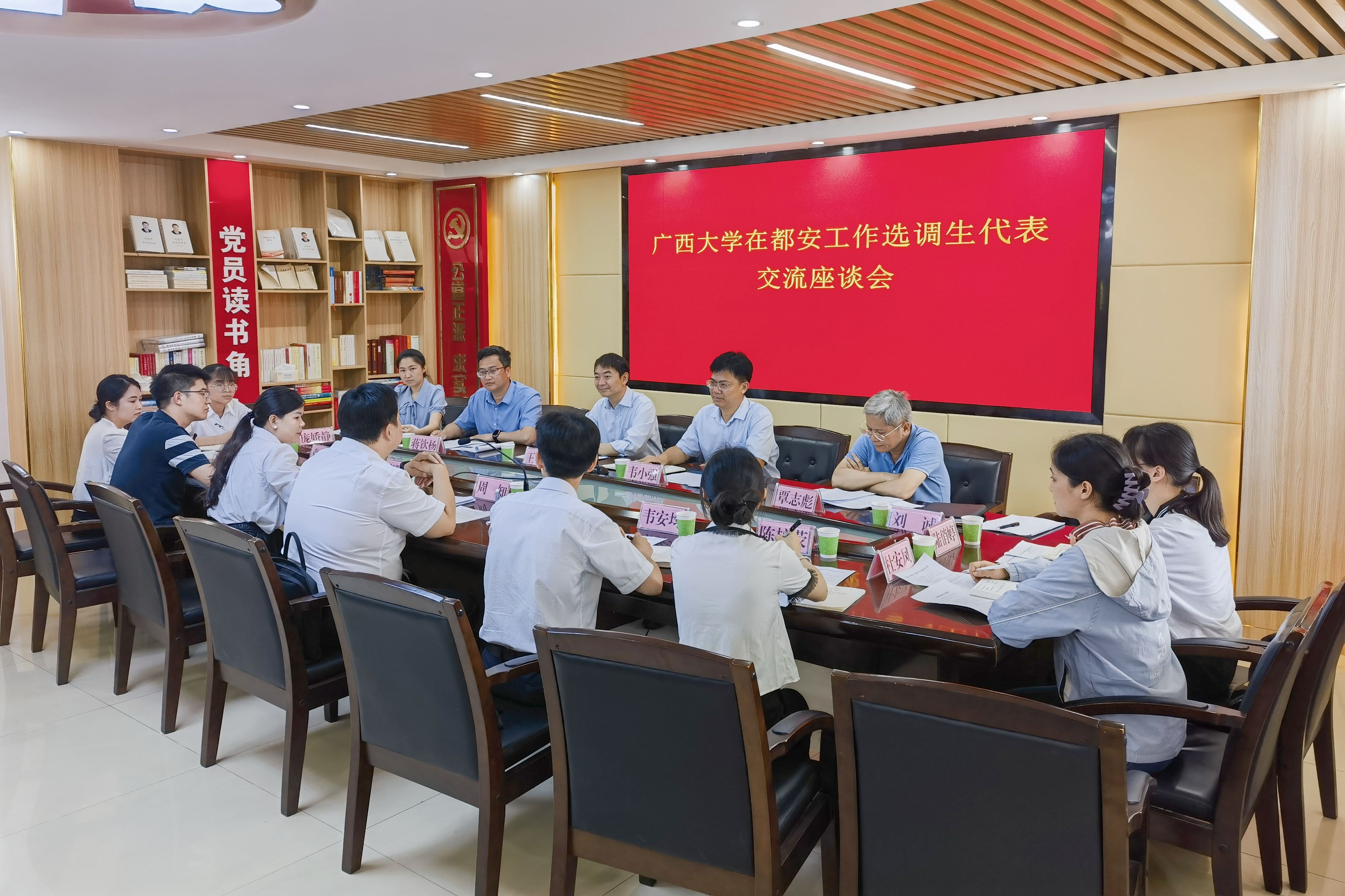 5月16日至17日,suncitygroup太阳成集团动物科学技术公司党委书记韦小强带队赴都安县、大化县调研选调生工作,并分别在都安县委组织部、大化县委组织部召开座谈会。suncitygroup太阳成集团员工工作部(处)副部(处)长王利军,suncitygroup太阳成集团副经理蒋钦杨,团委书记刘诚,动物医学系副主任方芳,教学秘书覃志彪参加活动。