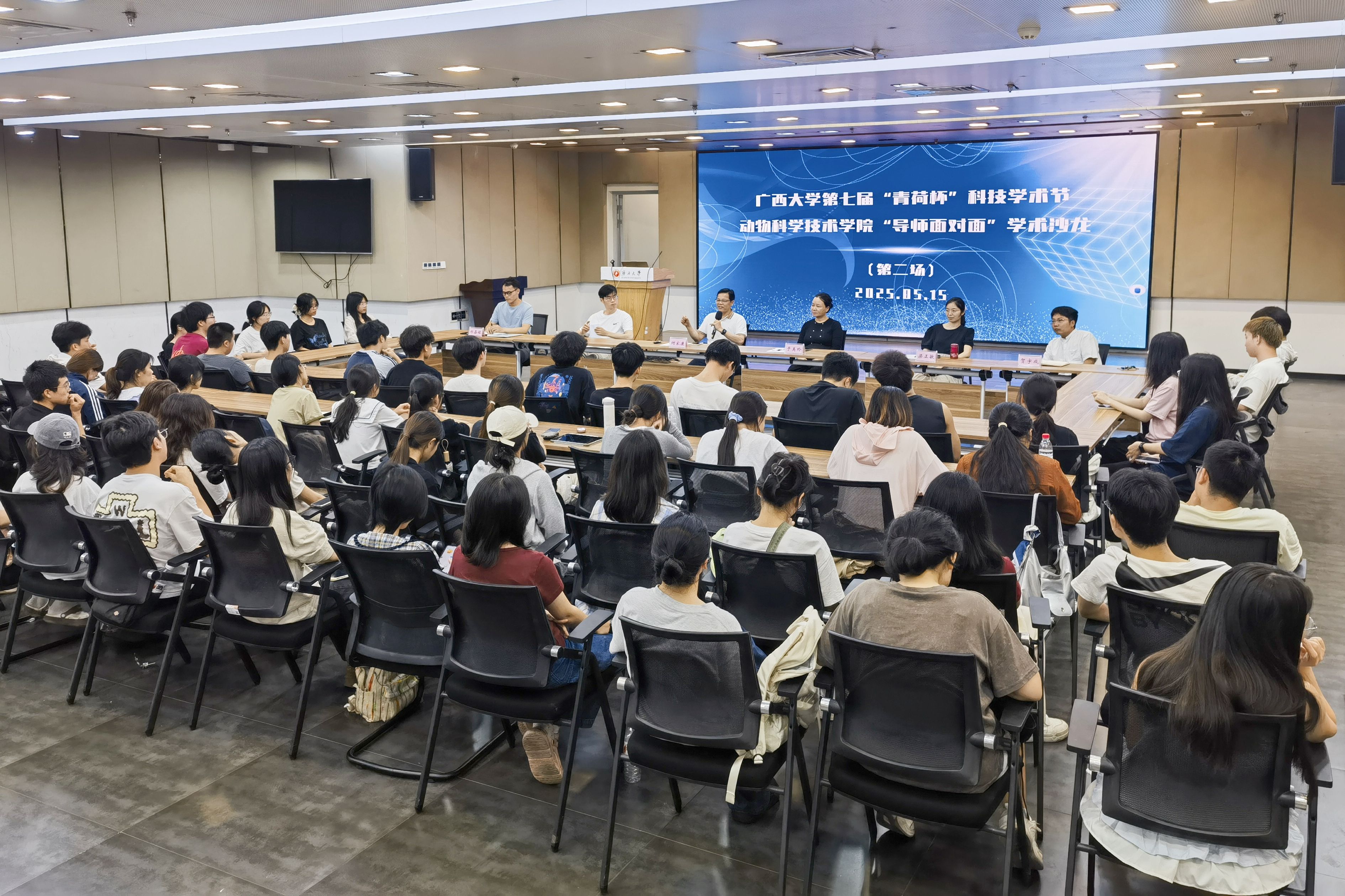为巩固专业思想,加强学风建设,增进师生交流,营造学术氛围,5月15日晚上,suncitygroup太阳成集团在老员工活动中心三楼会议厅举办第三季“导师面对面”学术沙龙(第二场),邀请何家康、于美玲、唐小川、梁正敏、贺宇成、郑嘉铭6位导师嘉宾到场分享个人经历、人才培养和科研方向,并与员工互动交流,共同探讨学业规划、职业发展和个人成长。动物医学专业2024级全体本科生参加此次活动。