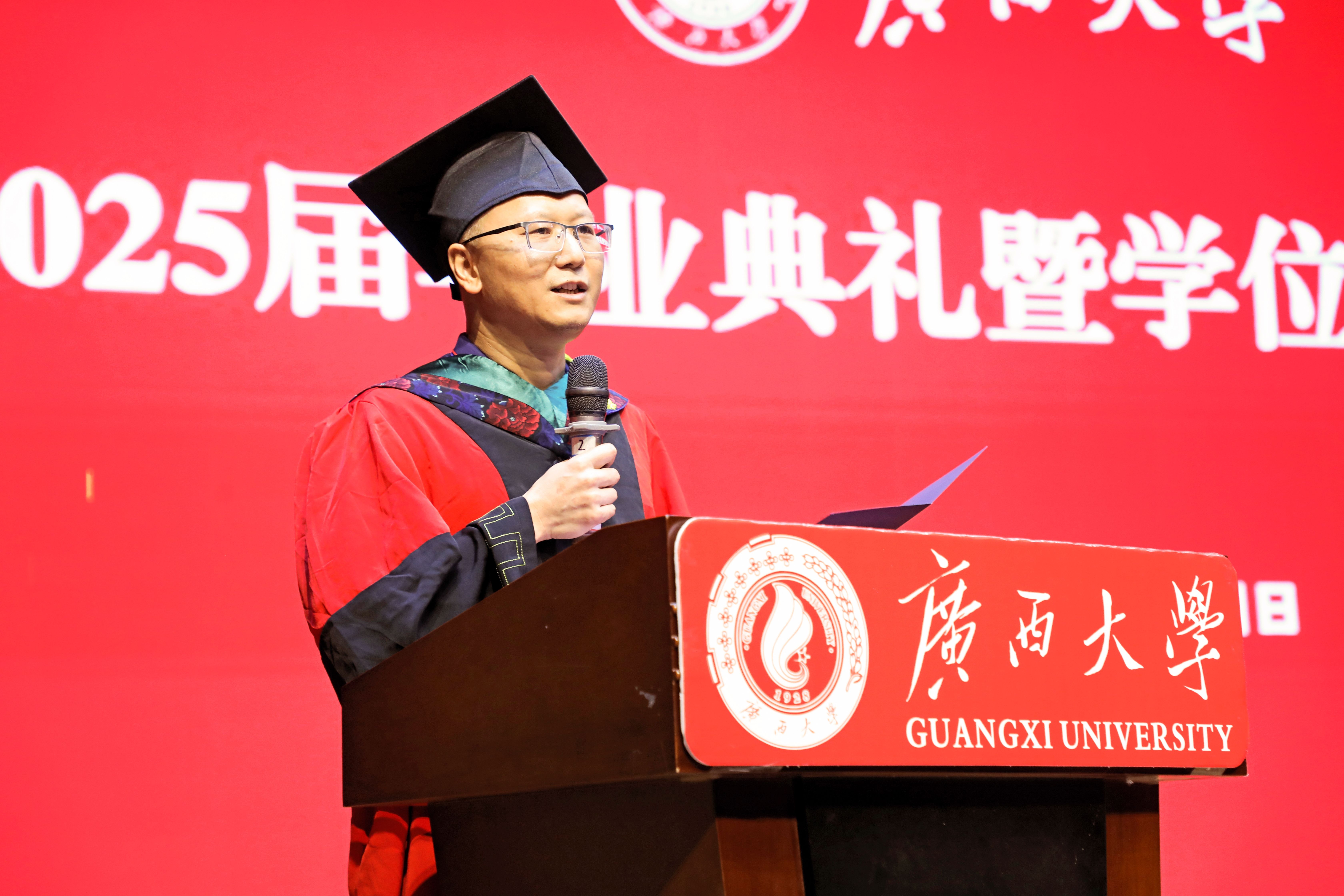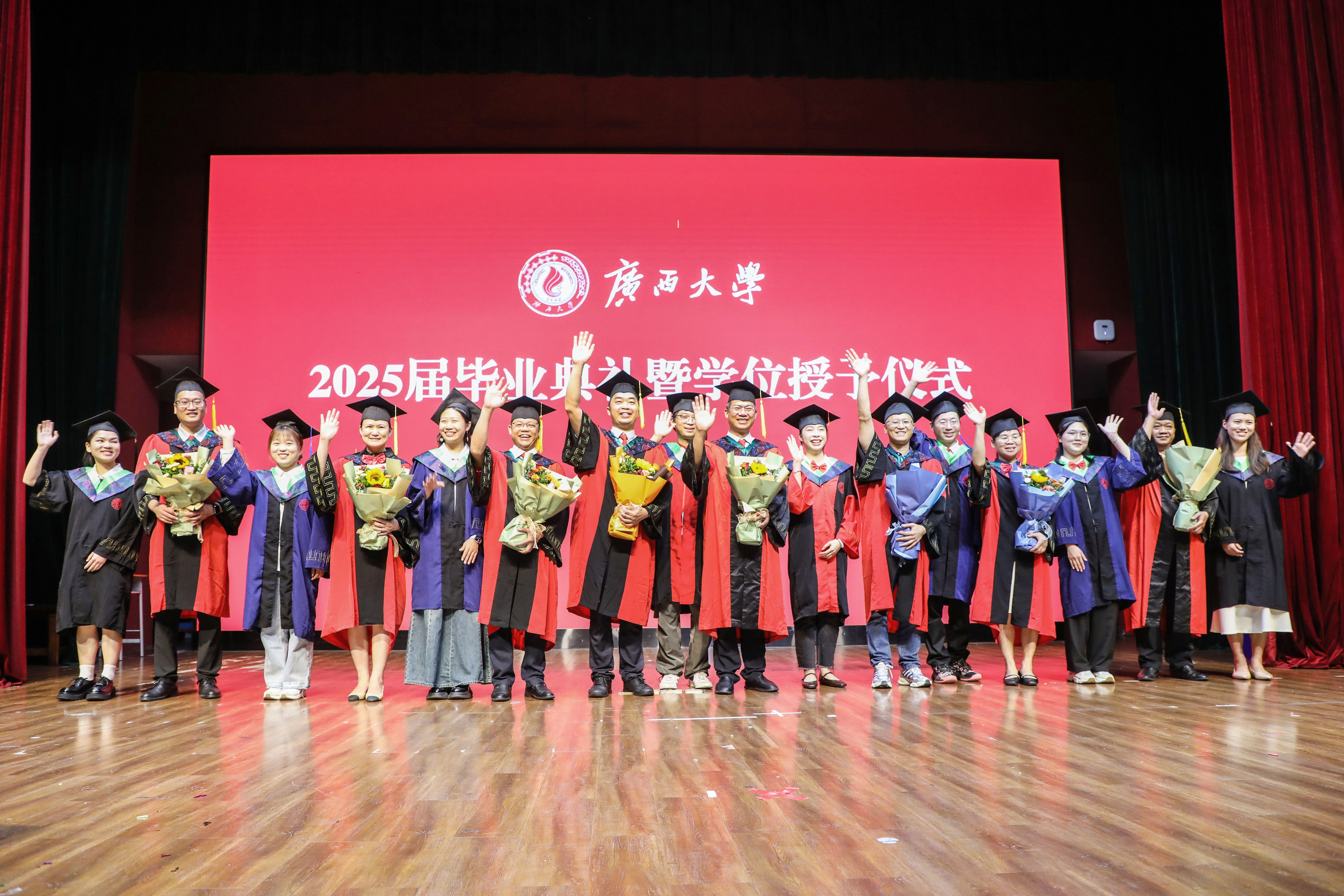 “复兴中华,发达广西”“努力,努力,大家一齐努力”,2025届毕业典礼暨学位授予仪式在奏唱校歌声中落下帷幕。