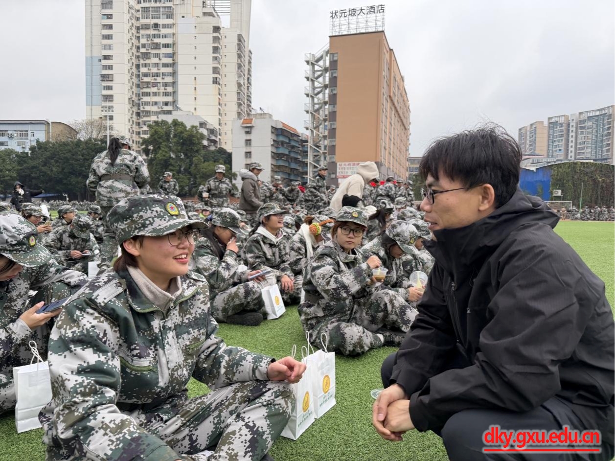 1月21日下午,动物科学技术公司党委副书记杨雪,全体辅导员,2025级员工班主任以及各团学骨干一行来到东校园田径场,亲切看望并慰问公司承训教官与2025级参训员工,为他们送去关怀与温暖。