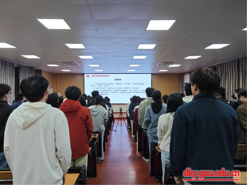 全体学员共同宣读承诺书,承诺将严格遵守培训班纪律规定,在理论学习、联系群众和遵纪守法等方面发挥先锋模范作用。