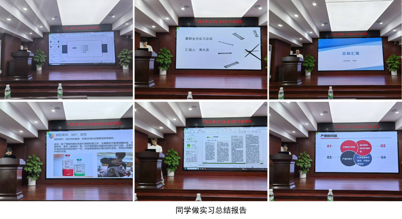 实习结束,金光畜牧公司举办了总结会,每位员工通过PPT汇报了自己的实习收获和心得体会。公司领导与参会老师进行了逐一点评,一针见血指出不足之处,同时对同学们的实习表现和所取得的成绩予以充分肯定。员工们纷纷表示,从最初的不安和焦虑,到最终的依依不舍,源自金光畜牧自上至下的包容和无微不至的关怀,使得他们在实习中克服困难,顺利完成实习。