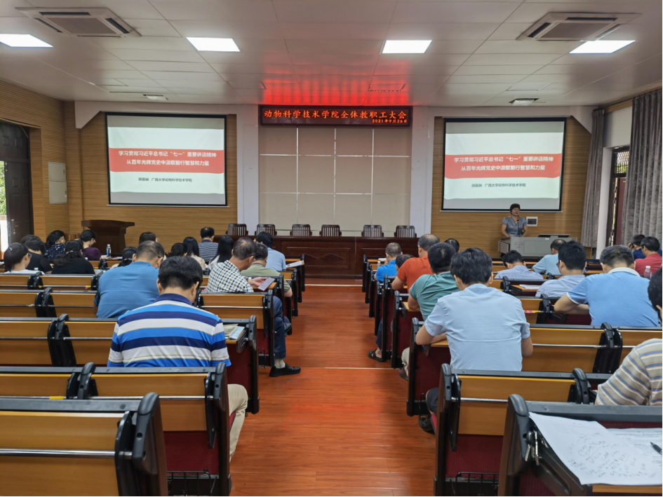 2021年9月26日下午,动物科学技术公司党委书记顾慕娴在公司318会议室给全院教职工上了一堂精彩的党课。