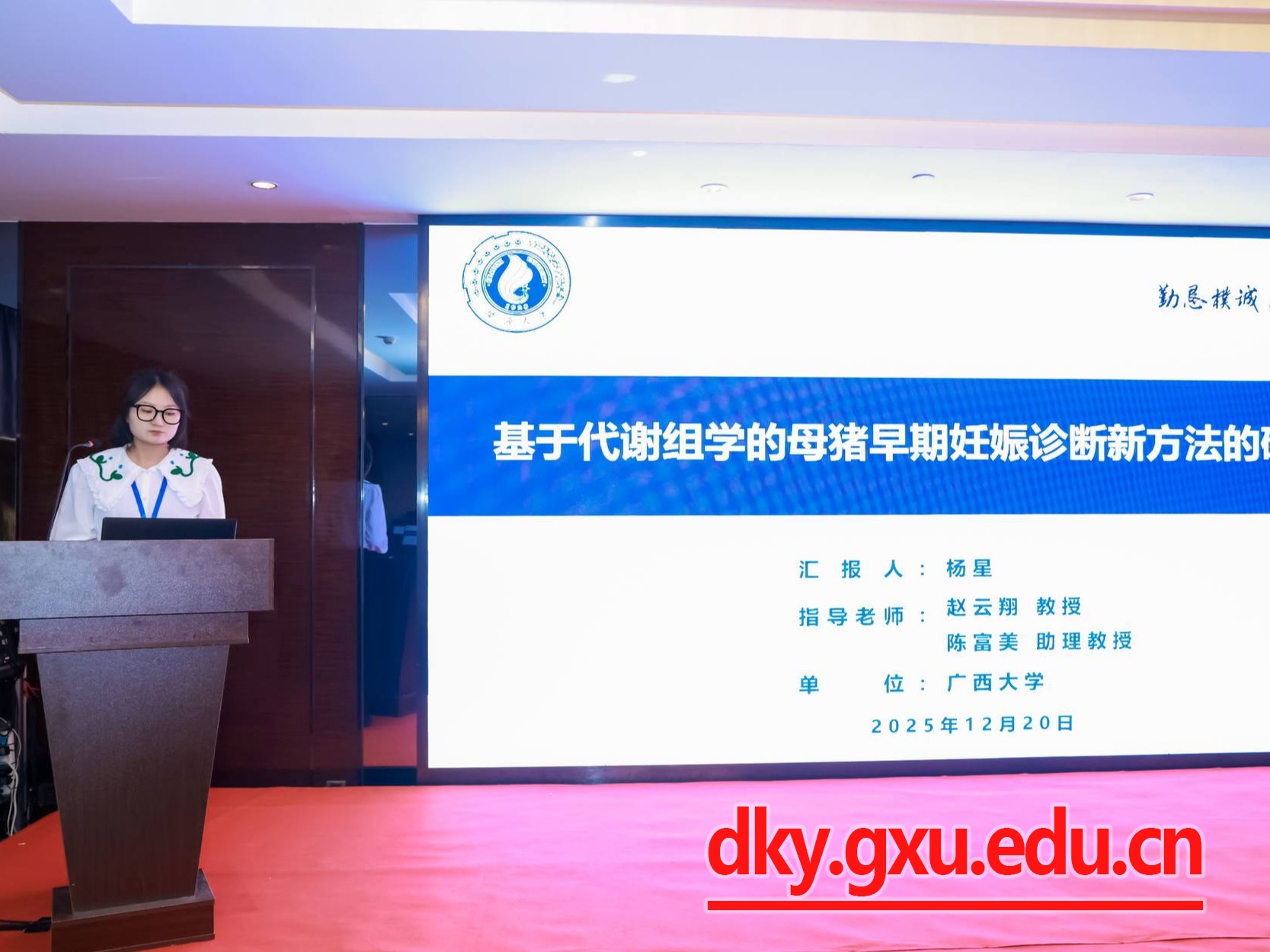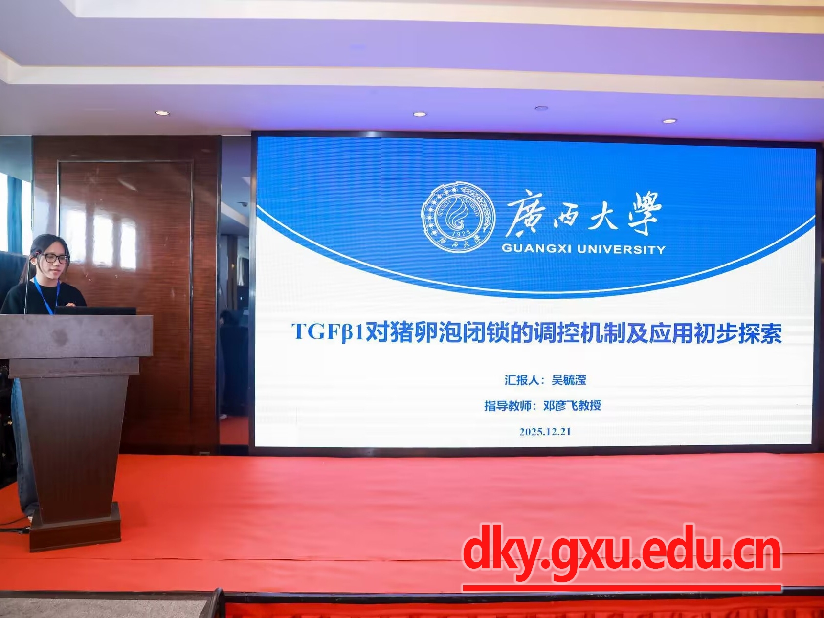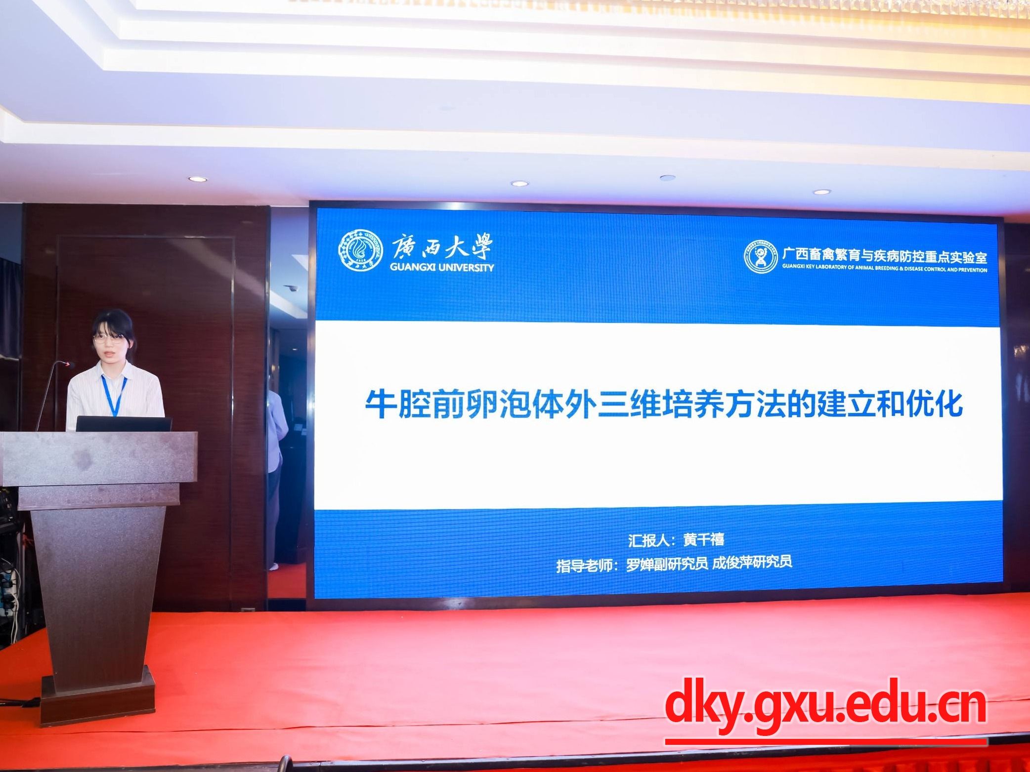 本次研讨会以“促进动物繁殖理论与技术创新,推动产业高质量发展”为主题,汇集了繁殖领域基础研究、前沿技术探索以及产业发展的最新进展和成果。会议交流内容包括特邀报告、青年学者论坛、论文摘要以及墙报。公司五名硕士研究生(黄千禧、吴毓滢、刘李、冯瑶、杨星)在青年学者论坛分别就腔前卵泡的体外培养、卵泡闭锁和黄体形成、母胎互作机制和早期妊娠诊断等新进展进行了口头汇报。此外,黄千禧同学论文被推举为高质量论文。